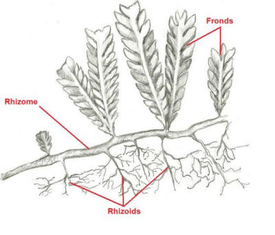 the substrate by fine hair-like extensions known as rhizoids. As is the case