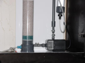 Thank you, Rob <<My pleasure. Cheers, J -- >> Knop C Reactor Bob, <<Hello, JasonC this time...>> Recently I bought a 2nd hand Knop C reactor, and I am having a few problems. <<Ok.>> I hope you can help. I have read your faq's and find them very helpful. I did not receive setup directions and cannot find them anywhere on the web, this may be the source of all my problems. I have the input going to the bottom connector, and it is fed from a tee connection off the main return line lots of pressure as I accidentally found out). I am using ARM media. I am adding 20 bpm of CO2, and have the effluent line dripping 20 ml/ min. <<Hmmm... I'm rather skeptical of ARM media, it seems every container I pick off the shelf has a leaf or stick in it. Daniel Knop won't guarantee the results of his reactors unless you use Knop Korallith in it... but, back to the numbers you presented, I think 20 bubbles per minute of CO2 is too high for this reactor, try something between 10-15 instead. I forget the calculation on how many drops equals a milliliter, but your effluent should be coming out at between 2 to 3 drops per second.>> The first problem is the return line stops flowing after several hours. I set the drip rate for 20 ml/min and after 6-7 hours it completely stops. I have a "needle" type valve at the end of the return line controlling the drip rate. I do not have the original valve. <<I don't think the valve type is your problem here. One of two things usually plugs the valve, either accumulated salt or calcium precipitation in the effluent line. I would think the latter is the cause in your case because of the amount of CO2 you are pumping in there.>> The second problem I see is a large air pocket in the chamber just below the sponge supporting the media. This pocket starts out small and gets large after several hours. <<Yeah... that's excess CO2, try turning it down a notch or two.>> Any suggestions/recommendations. <<You just got them all.>> Do I need to clean the reactor? <<No.>> change the "needle" valve to something else? <<No.>> replace the sponge that the media sits on? <<I don't think so.>> HELP! <<Well.. always test the effluent before cranking the knobs up to 11 - I'd be willing to bet the effluent is at a dKH of over 20, and should really be in the range of 15-16 to have the best effect. Always take it slow and stray to the conservative side of things when bringing a calcium reactor to bear on your system.>> Zander Gray <<Cheers, J -- >> Knop C Reactor I am interested in getting one of your Knop C calcium reactors. I have heard though that an additional pump (in addition to the pump that comes with the reactor) is needed for it and needs to be placed inside the sump to feed the reactor. I read this in a review but when looking at these reactors have seen nothing about this so first, is it true this 2nd pump is needed? Also, if it is necessary what pump is suggested? Thank you for any help. Mark Weigl Hi Mark, Jason C here... It is not required to have the additional pump. I'm assuming here that you are thinking it would be used to feed the reactor with water. You have other options here. You can also use a siphon or T-fitting from your existing return pump to feed water into the reactor. You might want to read this article, it should answer your questions: http://www.wetwebmedia.com/calcreactors.htm Good luck. J -- > Knop C Reactor Hi Mark, Jason C here... It is not required to have the additional pump. I'm assuming here that you are thinking it would be used to feed the reactor with water. You have other options here. You can also use a siphon or T-fitting from your existing return pump to feed water into the reactor. You might want to read this article, it should answer your questions: http://www.wetwebmedia.com/calcreactors.htm Good luck. J -- - Adjusting a Knop Type-C Calcium Reactor - <Greetings, JasonC here...> Good afternoon crew, here is a really difficult question for you, I am running my model c off a t-piece on a circulation powerhead in my tank, I have been playing around with the gas count and I have found that if I go to about 20 bubbles per minute I get gas block (not me personally but my reactor). <Perhaps not enough water pressure.> I was thinking about changing the feed to a dedicated powerhead (any suggestions) maxi jet, mini jet etc., what litre rate per hour would be suitable for the task, in your opinion do you think that this would give me greater feed capability and help to alleviate my gas problem (again not me, but my reactor). <Considering that you're trying to maximize the output of this reactor, I'm not sure a dedicated powerhead will provide sufficient pressure for this mode of operation. How about a T-fitting off your return pump, which will provide sufficient pressure to get by the gas build-up at the top of the reactor.> Any thoughts, ideas, help? Always greatly appreciated. Paul M, Manchester P.S. I have spoken to some guys over here and they claim to be putting about 60 bubbles per minute through theirs, is this possible? <It is possible.> and secondly wise? <No, not really - there seems to be a trend towards trying to get incredibly high alkaline effluent out of a reactor these days, but Daniel Knop points out in his instructions that effluent shouldn't be above 17 dKH [15 is ideal] because the additional calcium in the effluent will not go into solution as well, and will more often than not precipitate out - often right on the tip of the output valve. Cheers, J -- > Reactors. I am a hobbyist in the UK and found your site to be a very good source of reference. Could you please answer these queries for me: <I will try> 1) I am considering a calcium reactor. My stockist sells Aquamedic range, both open and closed units. He suggests the closed unit is difficult to regulate, is this true? Are there any other considerations? <These (German) products are very worthy of your consideration... I do like the open units much more as well... they are much easier to 