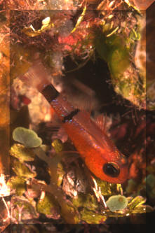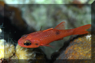 Cardinalfish. Tropical W. Atlantic. To three inches. Light red overall w/