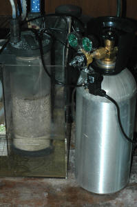 a manifold out of pvc, to inject carbon dioxide, an outlet for