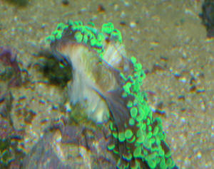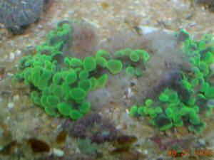 Tissue Damage on Bubble Coral How ya doin, guys? <Just fine> Quick question: is it normal for the sharp skeleton of a bubble coral to pierce through its tissue? I've had this coral for 5 days now. It already looked like this when I bought it (though I failed to notice this at LFS. Noticed it a few hours after I placed it in my tank). The coral seems fine, its bubbles have been expanding well, sweeper tentacles go out at night. I'm just concerned that it might die much later of "tissue damage". LFS reassured me I can swap it for a different coral before the end of the month. Should I return it to them? <I'm thinking that the tissue got damaged from handling. You shouldn't handle the tissue part at all when transferring from bag to tank or tank to bag. It does tear easily. With good conditions it should be OK, but the choice will be yours to make. James (Salty Dog)> Thanks. <You're welcome> Infected coral 3/11/05 I have a torch coral (not sure what kind), <a phaceloid "Euphyllia glabrescens"> I don't know what is happening to it. Is it dying? <yes.. polyp loss in the photo> A week ago it was fine and it was extended out of all 3 skeletons, and the last 3 days, 2 have stopped coming out. You can still see the tips of them. <Hmmm... I see little in the pics> I just had my water tested by the LFS and everything was excellent. (nitrate, nitrite, salt, phosphate, ph, ammonia, calcium, temp.) Did I miss any? <lack of QT and an infection that spread to other heads/polyps... and often spreads to other corals fro Euphyllia species (very common). Please be sure to always QT new livestock in isolation for 4 weeks before adding to the display... if only to protect the lives of your other animals from disease, parasites, infection, etc.> Should I move it? <not at this point... feed well instead. Do read through our archives on coral feeding> My lighting is Coralife Lunar Aqualight 192 watts. ( 46 bow front). I do add supplements as well (strontium, Molybdenum, Iodine, Zooplex, Phytoplex, DT's Phytoplankton), and I feed brine shrimp. <this coral needs larger zooplankton... very little of the food above is being eaten by this LPS coral. Try thawed Mysid shrimp, DTs Natural Diet Oyster eggs, minced krill, etc instead> All other corals are fine. Please no criticism, help only. Please help! I'm attaching a photo, I hope it helps. Also, how do you get rid of green hair algae? <algae control is writ about at great length in our archives, my friend... much better than I can summarize briefly here. Please take the time to read and learn at: www.wetwebmedia.com and navigate into the many subjects that interest you. Kindly, Anthony> Hammer coral question Hello WWM Crew, I am very new to this