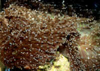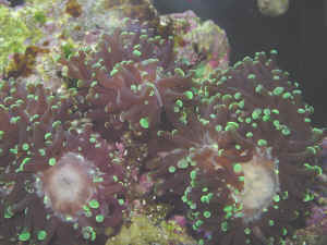 RE: Bubble coral question answered - thank you Hi Anthony, Thanks for the help. <very welcome... that's what we're here for. Of course, Bob has us locked in a room answering e-mail with nothing to eat except chocolate malt balls and braunschweiger, so we have no other choice... but we are pleased to do so nonetheless> I really didn't think it could be anything else but all of the literature I kept finding said that they were white or green - not purple. <wrong literature <wink>... there are many color variations naturally and captive induced> If it stays purple after maturity then it might be a rare item so that would be cool. <yes... a unique color> Thanks also for the tips on feeding it. I have frozen Plankton and an assortment of other foods that I can feed it so I'll give it a try. <great... just always feed a fine grade of food... no large chunks even though it will sting it (of course, it is a blind sightless animal that would latch onto your hangnail given the chance... case in point!)> As for the Xenia on the same rock, I'll have to relocate it to keep the bubble coral from harming it any further. <indeed> I had sent in two separate emails with questions. The one about the bubble coral you answered but I haven't heard anything back about my anemone question. Do you guys segregate stuff into topic buckets for various members of your team? If so, it may be that they just haven't answered back yet. My concern is whether or not the email actually made it through the system to you guys. Is that something you could easily verify for me? <yes... we must of overlooked it if it was in the body of the message or perhaps did not receive if it was a separate message...do send again> I don't mind waiting as long as I know that the message made it through. Have a good day, Alicia <and the same to you dear, thank you. Anthony> Frogspawn shedding, Frogspawn shedding > Gents: I just ordered Anthony's new book, but can't > wait till it gets here for my answer so here goes... <<Thanks Stan!!! I shall do my best. I see that I'm the second to reply, so my responses are in double carrots.>> I have a Frogspawn > coral that has separated > the soft tissue from the skeletal portion. I think > this may be due to my > being lazy and not getting my partial water changes > done, or is it something else? <If you have had it for sometime now, most likely from a lack of calcium > and/or alkalinity. Test kit can confirm this. If > new, not unusual when > proper shipping methods are not used. I prefer to > have this coral suspended > upside-down floating from a piece of Styrofoam. > Getting banged around in a > bag is not good for any LPS coral.> <<very much agreed with the first reply above (Bob/Steve?)... yes, it could be from a lazy/relaxed maintenance schedule... but specifically from allowing calcium and or alkalinity levels to drop. Many other trace elements have also been implicated in this symptom. No doubt some or all are involved. Many are depleted from a system within days to below natural seawater levels (iodine within hours!)...so when a water change alone, not even including additives, has not been conducted for weeks or months corals suffer by attrition. Another factor is feeding. Assuming your light bulbs are new (less than 10 months old) and appropriate for this animal, it will still starve without supplemental feeding. Caryophyllids (hammer, octopus, elegant, torch, etc) cannot feed themselves on the products of symbiosis alone. As such, they need to be fed weekly for maintenance and almost daily for growth. Without feeding, this can also contribute to the symptomatic attrition ("starving") that you have observed. Anthony>> > Can I use this tissue to "frag" this coral or should > I just pick it > up off the substrate and flush (I'll kill it first > so as not to inhabit Lake > Erie with LPS corals)? > <Best to remove from tank.> <<yes, must be removed... once bacteria set in, it can be highly contagious to some other healthy corals in the tank>> > Thanks for your reply and I look forward to getting > into your book. PS. Great idea to allow free updates to the book. Stan <<very welcome and thank you again, my friend. And don't forget.. regular water changes and feeding for this coral (meaty foods, not phyto in this case). Kind regards, Anthony>> Frogspawn shedding Gents: I just ordered Anthony's new book, but can't wait till it gets here for my answer so here goes... I have a Frogspawn coral that has separated the soft tissue from the skeletal portion. I think this may be due to my being lazy and not getting my partial water changes done, or is it something else? <If you have had it for sometime now, most likely from a lack of calcium and/or alkalinity. Test kit can confirm this. If new, not unusual when proper shipping methods are not used. I prefer to have this coral suspended upside-down floating from a piece so Styrofoam. Getting banged around in a bag is not good for any LPS coral.> Can I use this tissue to "frag" this coral or should I just pick it up off the substrate and flush (I'll kill it first so as not to inhabit Lake Erie with LPS corals)? <Best to remove from tank.> Thanks for your reply and I look forward to getting into your book. PS. Great idea to allow free updates to the book. Stan Torch Coral and Naso Tang Hey Bob, how are you doing? I have two questions. On my Torch coral one polyp doesn't seems to be inflating. The other one is inflating just fine, do you know why it is not inflating? <This does "just happen"... but do you feed this colony directly? Use vitamins? Has another animal touched this part recently?...> Also, I got a Naso Tang on Thurs. Fresh water dipped it when I got it home. It ate at the fish store and when I got it home, it started to pick algae off the rocks in my reef. Yesterday, Saturday, it is not eating and it is hiding in the back of the tank, not wanting to come out. Also, I saw some white dots on it. Ich? <Maybe> I plan to drop salinity and raise temp. 