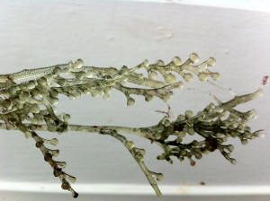 Caulerpa Invasion - 02/18/06 Dear crew member, <<EricR here>> I have a nuisance algae in my tank which (after searching this site and Algaebase) I believe is Caulerpa nummularia - there is also a photo of it on your site, under the heading Marine Algae ID 9. The email is entitled Algae ID 12/17/05. It is the photo on the bottom left. <<Yes, I see it.>> The thing is, there doesn't seem to be an abundance of information about it out there - or at least, with my amateur research skills, I can't find it. <<Hmm...a Google search re seems to bring up quite a few "hits"...though only working through them will determine if there is any useful information.>> What I do know is that it spreads like bird flu and seems impossible, short of a tank tear-down, to eradicate. <<All the Caulerpa species can be very difficult to remove once entrenched.>> Do you think a tang species might eat it? <<Maybe...but I think a Foxface would be a better choice.>> I don't know if it's toxic or not. Any help you can give me would be greatly appreciated. <<Have a look here, I think you'll find it of interest: http://reefshow.com/html/modules.php?name=AvantGo&file=print&sid=144 >> Thanks, Melinda <<Regards, EricR>>