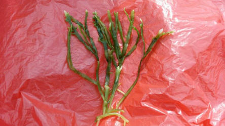 stalk that is also green and what looks like roots coming off of the