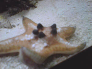 Chocolate chip starfish is doomed, I fear, unless rapid knowledge is gained by owner - 3/12/07 I got a chocolate chip starfish about a week ago, (after doing tons of research) and now he has these weird... <weird?> ...spots on his central disc and I have no idea what to do!! <OK, first off, a bit more info. on your setup would be very helpful. How large is your aquarium, how long has it been established, what else is living in there, how much live rock, type of filtration and skimmer, etc. are all very useful for us to be able to help you.> I tested the water for alkalinity (high), <High is subjective; what is the actual measurement?> nitrites (.1), <Nitrites must be at zero. What about ammonia (which also must be zero), nitrate readings?> and pH (8.4). Neither temperature or salinity are registering (but I just put the meter in). <OK, this is not helpful at all. Perhaps you could have waited until you had a measurement? In any case, you should have a thermometer in the tank to monitor temperature on a constant basis...> The spots are two right next to each other, they're very small and the arm they are closest to is drooping. This star fish is also missing one arm, and has been very active (in fact, he climbed... on some of the plants in the aquarium!) <Perhaps I'm being judgmental, but this doesn't sound like a good marine aquarium setup...> PLEASE HELP!!!!! -scared... ...in Iowa <My friend, I know you claim to have done "tons of research", but you obviously haven't been reading the right materials. This sounds to be a water quality issue; inverts such as the chocolate chip starfish, Protoreastor nodosus, are extremely sensitive poor environmental conditions. Here's a good place to start reading for info. on this creature in your care: http://www.wetwebmedia.com/ccstardisfaqs.htm Also, I would suggest you "start from the beginning", as it is evident your knowledge of marine aquaria is sorely lacking. Of course, none of us is born knowing these things, but you've taken it upon yourself to become the primary caretaker for this invert, and you must now "step up to the plate" and give it a suitable home. Please read here, for starters: http://www.wetwebmedia.com/marineSetUp.htm http://www.wetwebmedia.com/marine/setup/filtration/biological/biofiltr.htm http://www.wetwebmedia.com/seastars.htm http://www.wetwebmedia.com/stardisfaqs.htm Good luck, Jorie>