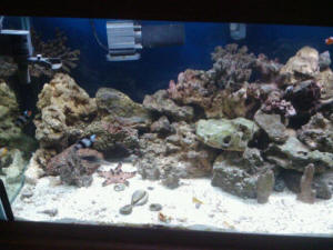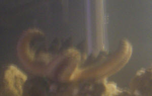 Chocolate Chips are Falling Off! >I have had a chocolate chip starfish for a few weeks and yesterday I noticed one of its chips fell off. >>This is not good, it sounds kinda funny, but it is not good. >I had it in a tank with a spotted moray eel, but the eel never bothered it. >>Eels wouldn't be a concern, but certain shrimps (that WOULD be eaten by the eel), triggers, and puffers are known to munch stars. >Today it is keeping 3 of its legs curled up and it seems to be losing more chips and turning white. >>Bad signs, my friend. If it appears the animal is disintegrating, there are only a very few things that can be done for it. These creatures are among THE most sensitive to water quality, salinity, and acclimation. I doubt it's an acclimation issue if it's been a few weeks. Water quality, especially in a tank with an eel is another story entirely. It is imperative to keep the water as pristine as sea water. >Is it just sick or is it dying? >>It very well may be dying, especially if it appears to be disintegrating. If the central disk appears to be falling apart at ALL, I'm afraid there is, for all intents and purposes, little to no hope. >I have already separated it from all my other fish so it doesn't ruin the tank. >>This was a very wise decision. >If it is sick what can I do to cure it and when can I put it back in my other tank? Melissa >>Melissa (now I feel as though I'm talking to my sister), water quality issues aside, the only method I know of to help a sick sea star is to try an antibiotic called Spectrogram. I would treat for a week, using FRESHLY made up water, not tank water. I would make certain that the water in the tank is perfect and make certain that I have the best test kits I can buy - Salifert and SeaChem are two excellent kits for the money. (Salifert is often out of stock, Dutch company - SeaChem is in Georgia.) Many times correcting the water quality is all that is necessary if necrosis is very limited. Marina - Need Help ASAP! - We need your help ASAP! We set up a 20 gallon quarantine tank and it has an Emperor 280 Bio-Wheel Filter and we have an air stone and heater and a couple PVC pipes in it. We are keeping the temperature at 81 degrees. <You do know you can keep that a little cooler - perhaps 78 degrees if possible.> We bought two clown fish and a chocolate chip starfish about two weeks ago and put them in to quarantine. The problem is today we noticed our chocolate chip starfish is on the bottom he is moving a little but not like he was and his arms are all curled upward. Our nitrites are reading at 3.0 and we can't figure out why they are so high. <Nitrate being the end of the line in the nitrogen cycle, the leading way to eliminate them is via export - water changes.> The ammonia tests are reading 0 and the nitrates are reading 0. Do you think this is why our chocolate chip starfish isn't doing well? <Probably not... does it have anything to eat? I wouldn't bother quarantining a Seastar and would go ahead and add this to your tank.> Also, what can we do to bring the nitrites down? We do a 25% water change about twice a week. <Three parts per million of nitrate is not high, and not a danger to much that I can think of. I wouldn't be too concerned.> Help! Also, our starfish has like a white mucus floating on one of his chocolate chips. What do you think that is? <Hmm... not good, get it into the main tank where it can find some food.> Your help would be greatly appreciated! Thank You, Bret <Cheers, J -- > - Need Help ASAP! Follow-up - We will go ahead and turn down the temperature on the quarantine tank. We give our starfish shrimp pellets twice a week and he does sometimes eat them. He is now looking a lot better after much more frequent (almost continuous) water changes. Our Nitrates are still reading 0 it is our nitrites that are still reading at 3.0 12 hours after a 50% water change. <Yeah... someone on the crew pointed out to me that I responded to your last mail by saying that a nitrate reading of 3.0 is not high. My bad, you said nitrites, and this most certainly is bad news for the Seastar. You really need to get that animal out of there and into the main tank - no need to quarantine it.> Since the last response from you we have done a 75% water change yesterday and we just completed another 50% water change. Once we did the 75% water change the starfish is doing better. The funny thing is our clownfish seem fine during the high nitrites. <Clownfish are an order of magnitude more hardy than seastars... but still, any tank fresh/salt/quarantine will need to have the nitrogen cycle firmly established, or made insignificant by regular [daily] large water changes, there is no other way. The presence of the nitrites is just he nitrogen cycle becoming established.> We decided to quarantine our starfish for the only reason that our main tank had ich (and our LFS suggested it). <Seastars don't carry Cryptocaryon and would be fine to leave behind as long as you're not treating the main tank with any chemicals.> That was Dec. 11th. The only thing we have in our main display is live rock (65 lbs.) and hermit crabs. We had about 9 snails in the tank as well and they died off one by one till the last died around the 22nd of Dec. We were wondering if we could add a little live rock to the quarantine tank to help cycle the tank (and if so how) so we don't have to do 75% water changes every day to keep the nitrites down. <I would not add the live rock to quarantine - better to just work with daily water changes of about 25%, perhaps 50% every other day.> What would you suggest? Thank you very much for all your great and valuable advice. Thank You, Bret <Cheers, J -- > Inside-Out Sea Star (1/6/2004) Hello, <Hi. Steve Allen tonight.> First Of all I would like to thank you for all your help. Having said that. I have a Chocolate Sea Star in a 180g fish only tank. The reason I am writing is because it is doing something that I have never seen or heard of before. It sit