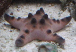 Live/dead cc starfish 7/14/06 Hello Bob, <Zimmerman! Bobby Dylan's namesake!> I have had a choc. chip starfish for probably 6 months. Recently my nitrates went high <As we used to ask in the sixties, "how high is high?"> and since then the starfish has become less and less active. <Good bio-indicator eh?> He often looks as though he is dead. Tonight he is laying on the bottom and all five of his arms are curled up at the ends. How do I tell if he is actually dead? Lisa <Mmm... you have taken ameliorative action I hope/trust. I would move this animal to better quarters if you have them... Flip it over on its back... if it's alive it will re-right itself. Bob Fenner> Chocolate Chip Sea Star ... health 7/3/06 Dear Bob, <Denis> I've had a couple of Chocolate Chip Sea Stars for over 8 months; they were doing fine until a 20% water change earlier this spring. <Yes... sometimes it takes very little to "off set", "push over the edge" these stars> They never seemed to have any issues with water changes before, but this time the larger one stopped eating a day after the water change. He also only moved at the bottom of the tank where he normally was always at the top of the tank. He also held up the tips of his feet up most of the time. <Good observations, bad signs> If I put food on the bottom of the tank, he would run away and then stop. I moved him to a quarantine tank where he just moved slowly walking over fresh food at the bottom for about three weeks before he started falling apart and died. <Mmm, not atypical> Changing 20% of the water in the main tank the other day resulted in the other CCS to start the same behavior. He no longer climbs the glass, but he is still eating. I would like to save this one. I have read a lot of article and FAQ on your WWM site, I see that a broad-spectrum antibiotic or fungicide might save him, but I cannot find any references to a particular brand or type of antibiotic/fungicide. Can you advise me on an antibiotic/fungicide to save my CCS that has had good results? <Mmm, perhaps Kanamycin, but most any broad-spectrum, gram-negative type is worth trying... NOT in your main/display system... and I must admit (if not done emphatically enough previously) that the chances of "success" (i.e. recovery) are dismally small. Bob Fenner> Thanks in Advance Denis Sick Chocolate Chip Starfish... env. induced - 05/10/2006 I bought a chocolate chip starfish about 3 months ago. I fed it every few days. It looked really healthy all along until last week when I noticed he had about half his tube feet missing on 2 legs and beside it on his skin there is a bit of white. He still eats and moves around and the top of him looks okay. I just bought a camelback shrimp a week before that. Could this be caused by the shrimp eating his arms? <Yes, possible> Also I topped off my tank with 1 gallon of water because of evaporation. <Conditions in this starfish's world need to be constant...> Its just a 25 gallon tank. Could that have been too much of a salinity change for the starfish and caused the problem? Thanks <Oh yes... Please read here: http://wetwebmedia.com/ccstardisfaqs.htm and the linked files above. Bob Fenner> Re: Sick Chocolate Chip Starfish... don't write... read - 5/11/06 My questions now are.........will the starfish live? What should I do to help it if anything? And should I keep the shrimp? <... read... where you were referred. Bob Fenner> Chocolate Chip Sea Star Question ... loss/health - 5/8/2006 Hi! I love your book and read your site almost every day and still have a question about my star, "Patrick". (The kids named him.) I can usually find my answers on your site, but I'm stuck with this one. He was doing fine in a 47g tall tank with a yellow eye tang ("Brownie"), 2 PJ cardinals ("Sally & Alley"), a decorator goby ("Lucifer"), 4 small blue legged crabs (un-named) and a bunch of Nassarius snails (too name to name). I have an Eheim wet/dry 2227 running and all my basic (nitrite, ammonia, nitrite, ph, Alk) tests come back fine except for nitrates which come back around 10-15ppm. I have about 10lbs of LR for now, I plan to get more, though, as finances allow. Anyway, the star used to come up to the top and I would place some food on an outstretched leg. <Good technique> He would get to the top and flop a leg out and I could lay thawed shrimp or krill or whatever and he would eat it right up. But after a while, he stopped coming to the top, and with the tank being soo tall, it's hard to reach him when he's at the bottom. It seemed as though he got lazy and stopped eating. The crabs never bothered him until he got lazy. <...> Then one day I saw a crab nibbling at one of his legs. It didn't seem to heal so I took him out and put him in the QT/Hospital tank. That was about a week ago. Since then the leg seems to be getting worse. What was a nibble now seems to consume almost the whole leg. It's "fuzzy" looking. I've read a lot of articles on your site and I've read that many stars do not recover from this. <Correct. The vast majority> My LFS suggested it was an infection, and amputating the leg to remove the infection to allow a new leg to grow?!?! <Mmm, have them try this on themselves first> Is that a good idea? <No> And also, in this QT/ Hospital tank I keep a percula clown, ("Nemo" ya never woulda guessed, right?) can he 'catch' this infection? <... no... but might perish from other consequence here> Should I treat the whole tank with an antibiotic or anti-fungal? Or is this infection limited to the star? <Likely the star alone> Thanks for your help!! I love all the information you guys and gals provide!! I depend on you all to help me with my saltwater adventures!! ~Melanie~ <Likely the same sort of environmental vacillations, lack of steady, useful biomineral at root here in the loss of this animal. Bob Fenner> Starfish/Chocolate Chip/Disease 4/12/06 Hello Bob! <James today.> I am new to salt water aquarium. We have had our 55 gallon aquarium set up for about 3 weeks.