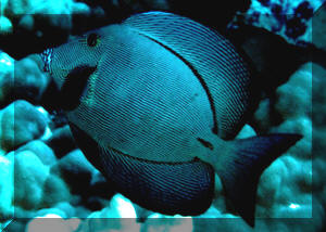 deeper. Selection: Most all Chevron tangs are collected from Hawaii for the ornamental trade... the vast majority from the Kona coast of the Big Island... and are well-taken care of from the point of collection, processing, holding, bagging/boxing... and this species ships well. However, there are some general things to look for in assessing specimens for purchase. Chief of which are: 1) Activity. This tang should be out and about picking on hard surfaces, including the systems walls, for micro-algae... 2) Feeding... in addition to nibbling on what's available, ask the dealer to feed the fish in front of you. 3) A lack of damage to the mouth... Tied in with the previous two
