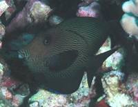 bought, collected or processed from marine environments. Disease/Health: It is my long-standing opinion that most losses of this fish are due to "hobbyist neglect"; principally through either unsuitable habitat and/or insufficient nutrition. Please, don't be one of these causes. Keeping a healthy Chevron for years is actually quite simple. Plenty of room, consistent, high water quality (simple filtration, skimming, regular water changes...), and a good deal of live rock, a dearth of competing micro-algal herbivores, perhaps some supplement soaked algae-based foods occasionally... is all this species requires. Specimens that develop HLLE have been exposed continuously to toxins like copper or allowed to suffer avitaminoses... These can be corrected with the use of "mud" in their filters/refugiums/sumps, food supplementation, and proffering live algae that's palatable. Again, I'm compelled to praise friend Pablo Tepoot's Spectrum Foods here for their ready complete nutrition and avid acceptance. Reproduction: As with all acanthurids, the Chevron cannot be
