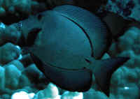 antithesis of a "fish that feeds, lives"... applies. Systems: This Surgeonfish lives in constant semi-contact with the stony rocks that make up the reefs in its distribution, searching and picking by day for algae, and nestling twixt rocks at night sleeping. Chevrons are always found in "open" areas of good water movement... and need space, circulation, high dissolved oxygen in your care. Though one can be crammed into a small space when it's small, I strongly advise a minimum tank of 80 gallons or four feet length to give this species room to move around, space to culture small algae for its consumption. Live rock and live sand should be "fresh" enough to produce green and diatom algae that this species consumes. Do bear in mind that this material needs periodic replenishment, replacement or supplanting to steadily produce such fodder. A good ten percent or more should be switched out and/or added after a year or so in place, and this amount moved again every six months or so following. Very small juveniles... 2 inch, 5 cm. in length