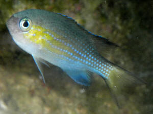 Chromis <Chromis> viridis, color var. 2/20/07 hi <Hi> bob <Bob coral <Coral> magazine <Magazine> on page 29 of the 02/03-2007 issue has a picture of Chromis <Chromis> viridis from the red sea <Red Sea> in a color form that i <I> have not seen before, <.> is <Is> the name correct? if <If> so is this fish available in the us? thank you reinhard haltermann <Reinhard Halterman> <<Don't have this magazine... but this species does look a bit different (more silvery, more greenish or bluish) about the world... and there are always the vagaries of photography and reproduction... BobF>> Chromis Query ... id, comp., sel. 4/8/06 Hi Y'all, <Chris> I'm just wondering if you could clarify any differences in suitability/temperament with Chromis or point me towards somewhere I can find more info - I have checked the WWM pages and FAQs already (& other sources) but can't seem to find the answers I seek. <... What little we have should be in the coverage, SubFAQs coverage by the genus, family: http://wetwebmedia.com/marine/fishes/part2.htm Scroll down to the Damsels, genus...> My query is specifically around the differences between Blue-Green Chromis (C. viridis?), Blue Chromis (C. cyanea?) and the Green Chromis (with black spot at base of pectoral fin?) (C. atripectoralis?) <These are the most common species associated with these names... though there are often others> I have seen recently Chromis labeled as blue Chromis which looked (in my humble opinion) nicer than the blue/greens, it is difficult to tell from the picture on your Chromis page but the fishies that I saw had markings similar to blue devil damsels around the eye - small black splotch/band - does this fit with how blue Chromis are generally marked? <Mmm, if you mean mis-marked, labeled and/or appearing, yes> The colour of these fishies was consistent with the deeper blue (as on your page) than the blue/greens. How do I differentiate between blue/greens and greens - is this the Pec fin black spot? <Not definitive... unfortunately. Some batches, source locations have this spot, others no.> Mainly my query is around the temperament of these fishies and any variances amongst variety - I am planning three of a single species for my new tank (a month or two before I start stocking yet - still working on the lists!) They will be sharing the tank with 2 Black & white Clowns, a couple of Banggai Cardinals & either a Flame Angel or a Coral Beauty (being tempted by the Coral B here) along with mainly SPS coral. On the basis of aesthetic value I am leaning towards the Blue Chromis (assuming you confirm that the fishies I saw labeled as such with the eye markings are indeed likely to be Blue Chromis) however behaviour and temperament (particularly as these are damsels!) are more important to me as I want all of my charges to co-exist as harmoniously as possible! On this basis is there much to choose between the blue, green/blue and green? <Viridis are the easiest going, most likely to mix with its own species, others... Cyanea next, Atripectoralis last... though all three of these Chromis are far to the left in terms of the spectrum of Pomacentrid aggressiveness. The short answer here is I'd go with the Blue-greens if this were a concern. Bob Fenner> Many thanks as ever Chris Red Chromis? 1/14/06 Hello crew <James> My LFS recently had a very attractive fish for sale that I had never seen before. I have searched your site and a few others and have been unable to locate anything that looks like it. It was labeled as a "Red Chromis", about 1.5 inches long, colored an orangey-red sort of like a flame angel, and had at least one bright blue dot on its side (as I recall it was on/near his dorsal fin). Unfortunately the poor guy was in his death throes when I saw him. According to the LFS he had come in damaged and had been swimming in circles for a couple of days. As I stated I can't seem to find a picture of this guy anywhere. I was quite taken with this fish and I was wondering if this description would ring any bells with the crew. Best to you all and thanks. Jim <Mmm, have recently been through the genus (putting away images from a trip), and don't recall any reddish member. You can try fishbase.org and scan all pix they have... Mine here: http://www.wetwebmedia.com/chromis.htm Bob Fenner> Chromis color change The orange lined Chromis is supposed to lose his color when he's juvenile he's blue with a orange stripe but is his adult form he's brown with a white tail... just thought I'd let you know <Yep. Thank you. Bob Fenner> Reef Chromis beyond Green? Robert Fenner: There seem to be many types of small Chromis that would be suitable as fish for the reef aquarium, but only viridis, cyanea and occasionally dimidiata are available in the trade. Why? <I often call this the "founder" or "flounder effect"... Yes, there are MANY more suitable (in fact much more suitable) species of fishes, non-fish livestock that can/could/should be utilized in the ornamental interest... as an old-timey industry person who visits collection, breeding sites all year long I'll tell you... mainly "key" species are targeted... as they're already known to be "good sellers", "in demand"... Amazing, this is the principal reason why we see so few "new" species offered~!> Or am I just not shopping at the right LFS or website? Do you know of anyone who offers other types of reef-safe Chromis for sale? RJS <Try the fine folks at Marine Center (dot com)... and ask them in turn where you might go... There are "contaminants" from time to time that "show up" in shipments as well... Bob Fenner, who says, come travel diving with us and pick up your own!> Re: Reef Chromis beyond Green? Thanks for the info. I can see why the "flounder effect" would apply to the old-line LFS pet store trade -- but the Internet trade would seem to open new markets for the bold supplier. <Ahh, yes... We could use people of your caliber and enterprise in our industry... unfortunately the remuneration and prestige are 