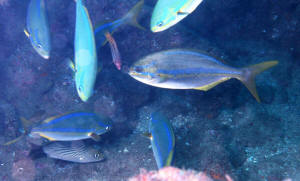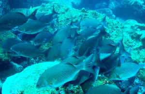 Also hailing from Mexico's Pacific side are the zebra perch, Hermosilla azurea and rainbow chub, Sectator ocyurus; both quite pretty, but not often collected.