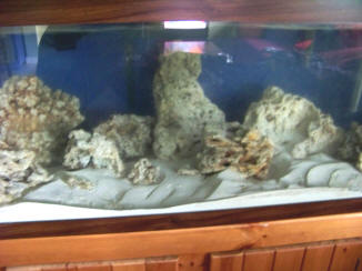 08/14/09 Planning Flow Rates 11/10/08 I'm in the process of designing my first tank. Ambitiously my wife and I have decided to put a 230 gallon 72 x 30 x 30 reef tank as a built in room divider. <Nice.> I want a clean look as the tank will be visible along the two long edges. On top of that the design of the wall that the tank will be built into gives little or no room at either end of the tank for plumbing or hangovers. My initial design thoughts for the aquascaping are to build a central island of rock with a cut through the center. I would like to have a distribution of flow rates across and around the reef to encourage coral growth of different types. I've been researching tanks and plumbing and believe I have a workable plan but wanted to run it by some experts first. <Okay.> The research reveals that I should be aiming for a flow rate of 10x to 20x my display tank volume. In this case 2300 to 4600gph split between the sump overflow/return system and a closed loop system. <Sounds fine.> My intention is to have the tank installed with overflows at each end with each overflow having around 18" linear space, allowing each overflow to handle approx 1200gph. I intend to have the tank drilled for 2" bulkheads in each overflow and fitted with durso pipes to provide a gravity feed to a basement sump/refugium. <Although a 2 can handle 1200gph, if you do plan on running each drain at this capacity, do consider adding another drain or two for redundancy in case one fails/plugs.> One of these overflows will feed the sump directly, the other will be fitted with a ball valve to allow me to redirect some of the flow between the refugium section and the sump. Both the sump and refugium will flow into a return section that will feed an external pump, which will return the water to the display via a return manifold. This return manifold will fit around the top of the tank, hidden by the rim, and provide 6-8 ½" effluents directed mainly at the top part of the rock/across the surface of the tank. The aim here is to provide around 2400gph flow total through the manifold. The flow through the separate parts of the sump/refugium is planned to be around 1600gph through the sump and 800gph through the refugium. Are these rates reasonable? <Yes, quite so.> The closed loop system I have in mind will consist of two drains hidden by the two areas of rock. Basically the drain will be under the rock, about 5" above the substrate. My intention is to have the bottom of the tank drilled and 2" bulkheads put in, then insert a standpipe and mount a drain cover on it to raise it high enough above the substrate. Finally I would box the pipes in with eggcrate and aquascape the rock on top and around the eggcrate. Does this make sense and seem reasonable? <Yes, sounds fine.> This system would feed a pump directly under the display tank which would pump the water straight back to the display tank to 4 return pipes drilled into the corners of the tank and pointed at the lower parts of the rock, thus providing flow around the rock and at a lower level to the manifold. My thought is that flow through the closed loop system should also be around 2400gph. Does this seem like a reasonable system? <It does.> Should I have a higher flow at the top of the tank with less through the closed loop system? Would the closed loop system be better controlling the top manifold? <Your plan will work out fine, do make the outputs adjustable with Locline or even just a PVC elbow on the end you can swivel.> Thanks, Richard <Welcome, the makings of a nice system. Scott V.> Circulation, SW... 6/22/08 Hi crew, I really appreciate all the information you have made available. It has certainly helped me. I have a 55 gal FWLR setup with a 15 gal sump that I converted to a refugium that has been operating for one year. Ammonia, nitrites, phosphates have been 0, nitrates are less than 5, dKH is about 9 and calcium is 360. I am ready to move up to a 90 gal tank with a 30 gal sump, but would like to avoid a couple of problems with my current set-up. Currently I have an Eheim 1260 (635 gph, 1" intake, 5/8" discharge) main pump and two powerheads (400 gph) for circulation, which I figure is about 26x tank volume. I frequently have minor diatom blooms (easily cleaned once a week) and a lot of debris stirred up during cleaning. My LPS <LFS> figures I do not have enough circulation and reading your website seems to confirm it. I am confused because it would seem that I have plenty of circulation. <For?> I want to make sure the new 90 gal tank has plenty of circulation. The overflow box on the 90 gal has three lines. I plan to direct two lines to the sump that came with the tank. A no-name pump (I don't think it is an aquarium pump because it has steel screws which the previous owner siliconed over) does not have any ratings, but I suspect it will do at least 500 gph ((2) 1" intakes, 3/4" discharge) <Mmm... the intakes may be insufficient here... esp. if one gets blocked> based on the electrical ratings. I plan to replace this pump shortly. On the third line, I plan to direct to a 15 gal sump that I will use for my refugium and use the Eheim 1260 (1" intake, 3/4" discharge) to pump back to the tank. In addition, I plan to put two powerheads in the tank, so my circulation should be about 20x tank volume. I am afraid based on my current tank that this may not be enough. I would greatly appreciate your thoughts. Thanks, Cedric! <Should be sufficient circulation for most purposes, if directed properly. I do have a concern re the diameter of the drain lines. Please read here: http://wetwebmedia.com/marsetupindex2.htm the third tray down. Bob Fenner> Tank circulation -Marine Tank Set-Up, water flow, filtration'¦ 05/19/08 I have graduated from a 30 gal to a 125'¦yes big step'¦ <<Yes, and a much more stable environment for a rookie than the 30 gallon.>> on the 125 I have two emperor 400 and a Coralife 125 skimmer..what I need to know is what to do about water flow'
