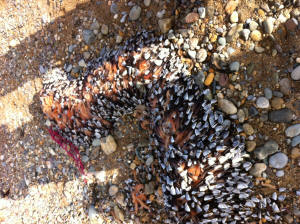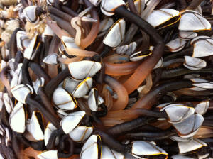 Cirripedian ID 7/17/07 So I was helping my cousin-in-law find plants for her new aquarium down on the docks and we found a bizarre animal that I can't identify. I found them attached to a piece of seaweed with a silvery white, bubbly substance. The animals themselves are difficult to describe. The resemble something I have seen before, that look like clams living on the sea bed, but the clamshell sits suspended above the seafloor by the foot of the clam. In this case the foot is a tube (attached to the other seaweed). The shell isn't actually a shell at all but looks like a bivalve. Out of the 'shell' pop 1-2 dozen little arms, and they seem to be doing the feeding. There is also a black dot behind them that could be an eye. They are a pale gray-white, and only about an in in length overall. We are on the coast of Maine so I'm going to have to say these guys prefer cold water to warm. One more thing is the seem, oddly enough, to be aggressive. When I stick my finger in the bowl they try to wrap around me. Anyway, I know this is a pretty weak description, but I can't seem to find a picture online to send you. I've lived my whole life on the New England coast and I've never seen on of these guys <Well, it's impossible to say without a picture, but you seem to be describing stalked barnacles. Many stalked barnacles attach to floating objects and live in colder water.> Thanks! -Aaron <My pleasure. Sara M.>