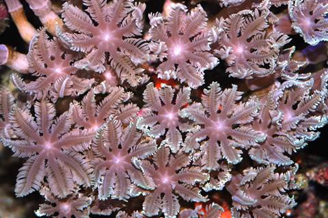 colors, at times with contrasting centers. Unlike pulsing soft corals