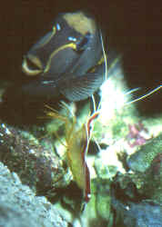 Range of Phenomena There are more than one hundred known species of shallow water/littoral fishes which engage in cleaning on a full to part time basis. Hosts include reef and pelagic animals; rays, sharks, bony fishes, marine iguanas, turtles, crustaceans, sea urchins, starfishes, even marine mammals. Best known families of cleaner fishes include Chaetodontidae (butterflyfishes), Labridae (Wrasses), Embiotocidae (Surfperches), Blenniidae... among others. Many hosts assume unnatural positions in front of potential cleaners to signal their desires. They strike motionless, open-finned poses, on their sides, head up, head down, even upside down to get the cleaners attention. Several hold their gill covers open, allowing the filaments to be cleaned. Color changes are common among fishes seeking to be cleaned... some investigators have asserted that this may be a manifestation of stress-conflict... the customer caught between a desire to be cleaned and the pain thereof, and wanting to swim/run away... I think it's a mechanism for revealing by contrast the presence of "owees" and parasites. Most of the commonly available cleaner species in the aquarium interest are rather non-specific re hosts and material removed, though there are some species that will only clean certain matter, species, groups in the wild. Biological Importance... to Aquarists: Though the role of cleaner fishes in the wild has been declared as vital in studies, the home aquarist is encouraged to utilize either small species of non-obligate cleaning fishes or their numerous invertebrate equivalents. The obligate species, like Labroides Wrasses fare poorly in capture, holding, shipping and captive conditions, the vast majority perishing along the way from reef to consumer... the few that "make it" to customers tanks often perish soon thereafter due to a lack of "customers".