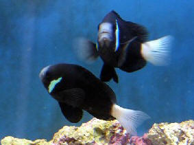 has a bluish body in places. Bob Fenner> Michael Clownfish and Anemone care 2/28/05 Hi, Which Clown has the dark patches on it the Amphiprion ocellaris or the Amphiprion percula? <The "true" percula clownfish, A. percula, generally has a lot more (wider) black color/bands> Also what is the minimal lighting requirements for a healthy BTA? <5 watts per gallon of water at 6500-10k K lamp color over less than 24" of water would be a safe and healthy minimum light scheme for Entacmaea quadricolor. kindly, Anthony> Clownfish question At LiveAquaria.com, is the Sebae clownfish they sell really Sebae or is it Clarkii? <Hello Jahner. I would contact LiveAquaria.com and ask them this question. I have no way of knowing without contacting them myself. James (Salty Dog)> Jahner <<To toss in my dos centavos: Actual Amphiprion Sebae clowns are extremely rare in the trade... 99 plus % of those sold as such are Clarkii's... I have hundreds of pix of this very wide-spread species, but none (!) of the Sebae... RMF>> Sexing clownfish how to tell a male from a female. <The females are usually much larger than the males. Most people recommend getting two of the same size and letting the one change to female. Take a look at this http://www.wetwebmedia.com/clownfis.htm Good luck, MacL>