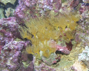 Hey Hey... time to read eh? Cnid. incomp. 3/14/07 Hey Guys/Girls <Kyle> Thanks for everything you do, you have no idea how much it is appreciated. <Welcome> My problem is with my 30-gallon tank. I'll give you my stats before I explain the problem. I use R.O water, Calcium 425, Alk 10 KH, PH 8.2 Salinity 1.026 temp 78. I use 5 drops of ESV iodine a day. (I know my alk is high and cal is low but I have been adding supplements and its starting to balance out) <Mmm, do you test for this Iodine? I would not add it so frequently (any more than once a week), unless you did> I have a 15 gallon sump and a Rea sea prism Skimmer. My lights are approximately 16 inches from the surface of my tank. I have a clown fish, a Bicoloured angel, <Needs more room than this> a six line wrasse and a cleaner shrimp. I have been fighting with my polyps for about 3 months now. I was a fish only guy for about 2 years and decided to jump into coral. I bought a 250W Metal halide light thinking I was going to up grade my tank in the summer. <Mmm, a lot of light for this size/volume...> I bought a Zoanthus frag and was given a small Acro frag to start. Everything was going well the Zoas and Acro were both growing. So I purchased a frag of leather, xenia green torch coral and was given a clam. <Whoa, whoa whooooooaaaaah. All these animals in a thirty?> The clam has been healthy ever since, no rips perfect colour and responds well to light changes. But this was the last day I ever saw my Zoas open. I did some reading and found that Leather lets off toxins that can poison the rest of your coral and a good way to combat this is with Carbon. <Is one approach... However... adding small specimens... over a long period of time... one at an interval... many other techniques are recommended...> I bought carbon and put about 3 cups full <!> into a mesh bag and placed the bag in a low flow area in my sump. I also relocated the Zoas several time hoping they were just not liking the spot they were in. After 2 weeks everything still looked poor and my Acro frag bleached. I also read that Green torch coral is one of the more aggressive species of coral. (like I said I'm still learning) <Not the easiest way...> So I decided I was going to remove the leather and the green torch coral and give it away. My tank has been free of leather and torch coral for approximately a month? still no change. A week ago I did a 50% water change hoping it would remove the toxins from the water? still no change. <All takes time...> Then I thought its probably the Zoas maybe there are so diseased they won't open. <They're relatively noxious as well...> One of my friends (being a nice guy) offered to take them from me and within a week they opened in his tank and looked moderately healthy. I then thought maybe they just aren't compatible with my tank so I asked him to frag some Zoas for me that I could try in my tank. I dripped them into my tank and they have been tightly closed for days now. Then I came home from class today and noticed that there were brown stringy fibbers growing out of the center of the new polyps. <Yikes...> I'm at a complete loss. I have no idea. I hope its just something small I'm missing but I have read everything I can, and I need help. are my lights to close to the tank? My water? If you could suggest anything I would appreciate it. If you think pictures will help then i can take pictures and send them. Thank you very much Kyle <You need to know... a bunch... And not knowing you, what you already are aware of, I suggest you start by reading the survey articles on all the groups of Cnidarians you list here... and the related/linked FAQs files... Mmm, start here: http://www.wetwebmedia.com/marine/inverts/index.htm Bob Fenner> Quarantine? 3/10/07 Dear WWM Crew, <Jan> As always, thanks for all of your help!! It is a great comfort to be able to reach out to you folks and get such great advice and help! <Yes> We have a 72G reef tank with about 80 lbs. of LR. Our water parameters are (Temp=77deg F, Sg=1.025, pH=8.3, Ca=380ppm, Mg=1290ppm, dKH=6.75, Ammonia & Nitrite=0ppm, NO3= 5ppm). The tank was set up and cycled last May. For about the last six months our live stock has consisted of a pair of clowns (A. ocellaris), a fat mandarin (S. splendidus), and a school of 9 Chromis viridis. 15 various corals, 2 tube worms (Protula magnifica) 2 turbo snails and some (+/- 8) blue legged hermit crabs. In addition to this we have 3 peppermint shrimp (L. wurdemanni) & 2 fire shrimp (L. debelius) and 2 common cleaner shrimp (L. amboinensis). We have 3 questions. 1. Our LFS has been holding a Hawaiian Yellow Tang (Z. flavescens) for us for the last 2 weeks in their "quarantine" tank with water dosed with copper. However, while the Tang has been alone in this tank, the tank is connected to other tanks running on the same water. Should we quarantine this fish? If so, for the full month or just two weeks? <I would quarantine this fish, or at the very least run it through a prophylactic FW dip/bath... detailed on... WWM> 2. We are also thinking of adding a Lawnmower Blenny (S. fasciatus) as our tank has plenty of algae on the LR. Given this fishes need to graze algae, should it be quarantined? If so, for how long? <I would quarantine this species for two weeks... some smaller, likely-to-starve Blennioids for a shorter duration> 3. Also, concerning the Blenny & Tang, given the size of our tank and the current livestock listed above, do you see any potential problems with adding either or both of these fish? <Mmm, no... not really... The fifteen species of corals here (in a 72 nominal gallon volume) should not be added to though... as they are likely "used" to each other... will/would react to new Cnidarian life adversely> Thanks!! Jan & Ellen <Welcome. Bob Fenner> Yellow polyps... toxic sys., incompatible mix of Cnid.s 3/6/07 Hey, i had a question about yellow polyps sea mat infections. I have had a 12 gallon reef for about 6 months now and one of the first