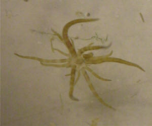 24 tentacles, white brownish in color, retracts a little when