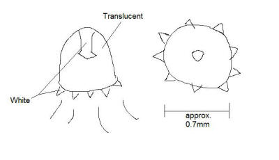 have tiny white hair/spikes...almost like a tiny microscopic sun or a