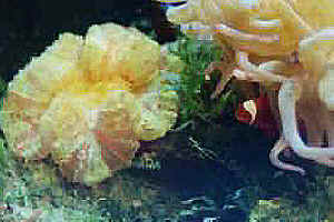 Condy anemone is tipped over Hello I have a Condy anemone I just purchase, it is doing well, and eating and such, but it is tipped over to one side. I touched the bottom of its "foot" that isn't touching the rock and I noticed it isn't sticky. Is it possible that part of its "foot" lost its stickiness. Or is this just a normal thing they like to do? <Not normal... not healthy. Please read here: http://wetwebmedia.com/marine/inverts/index.htm. Scroll down to the Anemone section... re anemones period, their systems, health... and particularly the Related FAQs on Condylactis in particular. Bob Fenner>Re: my Condy anemone is tipped over - Stop Resending! Hello, I guess my anemone lost all its stickiness, b/c when I woke I found it stuck in my powerhead. It was not a very good sight. Do you recommend bubble tip anemones? I have heard you say that they are hardy. If so does it matter what kind? Or are all bubble tips good? <Uhh, reading is even better... please stop writing... and read... what you ask is posted over and over on WWM. Bob Fenner> Condylactis Anemones Hello, <Good Morning> My name is Savanah and my brother has recently started a saltwater tank. He got a Condy Anemone and it was doing fine. Then one night when we got back from dinner the anemone was in a ball and there was no tentacles showing at all. Is it dying? What do we need to do? Please help us if you can. <Savanah, you don't list any specifics on the tank...size, lighting, etc. Condys do what you describe occasionally. Also, check your ammonia and nitrite levels. Do a Google search on the Wet Web, keyword "anemones". There you will find information on keeping these anemones. James (Salty Dog)>My Husband the Condylactis >I posted this on your chat forum site as well, but thought I would email you directly. >>I personally don't usually visit the forum, let's see what you have for us today. >My husband (who is like a little kid in a candy store at our LFS)... >>As have I been in the wholesaler's. >...decided to buy some clownfish over the weekend. We have a 55gal tank w/approx. 60-70lbs of live rock, and live sand. About 10 snails, and 10 crabs. The tank has completely cycled and we just started adding new critters last week. He brought home some xenia and a couple featherdusters early last week. And then just like an impatient 2yr old, he went back and bought 2 clownfish and a Condy anemone a few days later. >>You do have your hands full, don't you? My fianc?and I are delaying a new tank because we keep arguing over stocking (what) and husbandry. >He said he was told by a girl at the store that the fish would use the Condy as a host, which I have since found out, sounds highly unlikely. >>NOT unknown, but then again, Clownfishes have been known to host powerheads. This is not, however, their natural state, as the Condylactis as an Atlantic native, and Clownfishes are Pacific only. >The girl also didn't bother to ask him what else was in the tank, and my idiot didn't offer the information to her either. >>Well, she probably wouldn't have known what to do with the information had he given it to her anyway. >My problem now is that the Condy is basically attacking our xenia!!! >>Uh oh! Time to sell it back to that girl, methinks. >I don't know what to do. >>Remove it. We really do discourage people from placing motile, stinging inverts, such as anemones, with sessiles for exactly this reason. >We move it to the opposite side of the tank, and the next morning, it's back on top of the xenia again. Is this going to kill my xenia? >>Very well could, or at least greatly limit its growth. >Or what should I do with the Condy? >>Send it back. >It basically sounds like the Condy is just going to be a nuisance to our tank. Are all anemones like this? >>Essentially, fundamentally yes. >Do we even need an anemone for the fish? >>Not at all! Also, many folks are finding that their tank-bred/raised Clownfishes don't seem to KNOW what to do with anemones. This won't harm or affect the fish negatively at all. >I'm apologizing for my husband's childish behavior in advance.... He now understands why it is important to read up on everything before you buy it! Robyn Sampson >>Short, swift, sweet lesson. Not so much childish as impulsive, and I suffer from the same malady on more than a few occasions myself. MarinaMy Husband the Condylactis - Follow-up >Thank you very much for you helpful insight. Glad to say the Condy is on its way back to the store. >>Robyn, you're very welcome. A warning to be prepared, when people get into this hobby it can quickly become an addiction. Impulse control is the biggest problem. Marina Condylactis anemone Hello and I thank you in advance for your help!! My husband and I set up our salt water tank about 6 months ago. It is a 29gal. We used live sand and live rock... we have 2 damsels, 2 emerald crabs, 4 hermit crabs, a cleaner shrimp, a clownfish and an anemone.. a Condy (I think). The anemone has a orange/peach body with white tentacles that have a small purple dot on the tip of each tentacle. << Sounds like it. >> For the first few days it looked perfect. We test our water regularly and find no major shifts or abnormal levels. But one morning I woke up to find it had unattached itself from a piece of rock and fell behind the rocks. It was completely withered. It looked very dead. My husband picked it up and moved it to the center of the tank where the lights are bright and by the next morning it looked perfect again. We thought it was a one time event due to temperature...It was up to 80 due to the heat turning on in the house. (First cold night of Fall and we failed to think to adjust the tank heater.) But within a week I noticed it withers again. It has continued to wither every few days. We have fed him several times and for the most part appears very healthy. But he continues to wither often. Please help us... we have tried to figure out what we are doing wrong or if the anemone is unhealthy and should be remov