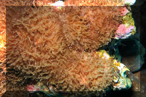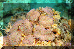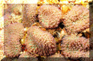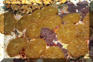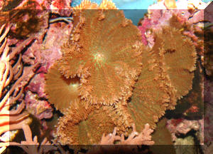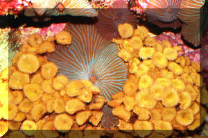 Close: Mushroom corals are either the hardiest group of cnidarians or close runners-up. They can be easily maintained in "standard" or reef-type marine aquaria, are hardy, undemanding, very good choices for beginning to advanced hobbyists. All they ask for is iodine supplementation without too much light or strong current. Bibliography/Further Reading: Brockman, D. Undated. Disc or carpet anemones in the tropical marine aquarium. Aquarium Digest Intl. #32, Tetra. Colin, Patrick L. 1988. Marine invertebrates and plants of the living reef. T.F.H. Publ., Neptune City, NJ. Delbeek, Charles J. 1987. The Care and Feeding of Mushroom Anemones, Suborder: Corallimorpharia. FAMA 10/87 Elliott, Cook, J. 1989. Diel variation in prey capture behavior by the Corallimorpharian Discosoma sanctithomae: Mechanical and chemical activation of feeding. Bull. Mar. Biol. Lab. Woods Hole; vol. 176, no.3 pp. 218-228. Gutierrez, Santiago. 1991. From a reef's point of view...Corallimorpharia...Ricordea florida. FAMA 2/91 Gutierrez, Santiago. 1993. From a reef's point of view... Rhodactis sanctithomae. FAMA 11/93. Haywood, Martyn. 1989. The Manual of Marine Invertebrates. Tetra Press, Morris Plains, NJ. Mancini, Alessandro. 1992. Breeding the Corallimorpharians in the marine aquarium. FAMA 10/92. Straughan, Robert P.L. 1975. Keeping live corals and invertebrates. A.S. Barnes, S. Brunswick. |