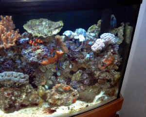 Coral Health 1/28/04 I have a 55g tank with a Remora skimmer, 80lbs LR, 3inch DSB and 265w PC lighting. It has been up and running for just over a year now and I have used nothing but RO/DI water, Kalk and now B-ionic 2 part system. I have done regular water changes and so far have experienced excellent purple coralline growth and happy fish/invertebrates. The problem is with just certain corals and I cannot pinpoint it. I have a star polyp, brain, mushroom, umbrella mushroom and finger coral that all seem to be happy. But no matter what, the Galaxea, Goniopora and frogspawn will not open more than 10-20%. <FWIW... the first common thread I can think of to these three corals is an inclination towards lower light schemes. Arguably, the Goniopora and the Frogspawn at least should be kept in the bottom third of this particular tank. Furthermore... the Galaxea and the Frogspawn are very heavy feeders, requiring target feeding several times weekly unless the fish load is high enough. They will die if forced to live on the products of photosynthesis alone in aquaria. Slow attrition is a common problem with aquarium held specimens> I have just changed all the bulbs, also done large more frequent water changes in the past, all with no results. I have been feeding them Coralife bottle food, and Phytoplan in the past... <ughh... the thought was good, the choice was not alas. Most all of your corals are carnivores... requiring zooplankton or like substitutes. The phyto has little or no place here... and there are a wide range of issues with the Coralife foods that you can discover chatting with aquarists abroad> now I am trying Golden Pearls. <a good choice... but Cyclop-eeze (frozen thawed) would be a great addition here... better still, adding a fishless refugium to the display to generate plankton. If you have our "Reef Invertebrates" book (Calfo and Fenner), there is very extensive coverage of the topic therein> The only thing left I can think of is my evaporation water I re-add one gallon a day, is this too much, maybe throwing things off? <not likely at all... just add slowly of course> I monitor the water parameters closely all pH, calcium, Alk, Nitrate is very good, so I am not sure what else. Should I add additional trace elements? I use Instant Ocean salt now and only add Iodine as extra, I hate to add too much extra garbage. <agreed... stay the course. Frequent water changes are the best way for replenishment and dilution> thanks for any ideas you might have! -Brian <best regards, Anthony> Coral color changes To the WWM Crew : I have a 450 litres reef aquarium with a big Tubipora musica, 1 Sinularia dura, 2 Turbinaria peltata, a bubble coral, one Cynarina, a big Sarcophyton, one Tridacna and more than 80 Actinodiscus with several colors and shapes, a problem to solve. There are a good amount of live rock, about ? of the entire tank volume, almost covered and tied together with red and rose calc. algae. It's a 4 years old tank. I notice that the bubble coral, initially with a brilliant with color, has becoming brownish, similar to the other corals like the Sarcophyton and some Actinodiscus. I believe this is because the type of light. The question is, what can I do to change this, to promote some color changes if possible? The lights: 4 fluorescents day light Osram 36W 72/965 and one actinic. All the corals are growing and looking very good, some of them have tripled is initial size. <Hi Flavio. Your coral may be turning brown for several reasons. High nitrates, lack of feeding and low light can both stimulate the coral to produce more zooxanthellae to get more energy. Bubble corals generally don't require much light, so I would look at feeding more and reducing nitrates if they are high. HTH. Adam> |