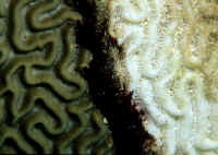 Open brain unwanted growth 11/6/05 Hello. <Hi there> I hope you can help with this one as you have in the past. I have a green open brain coral that has grown green hair algae that has exposed some of its skeleton. <Mmmm, what came first, the chicken/algae or the egg/damage, conditions that induced this?> I have removed it frequently but seems to grow back worse. Others have suggested that I use a Dremel and drill out the algae like a tooth cavity. <Mmm, better to seek out what is "too much" or "too little" here and change the circumstances in the system to favor the Trachyphyllia> Before taking such a drastic measure I wanted to consult the pros. Your wisdom is eagerly anticipated by my coral and I. Thank you for your time <Do a read over of our area covering the species/family: http://www.wetwebmedia.com/trachyphlliidae.htm and the linked files above... hopefully "something/s" will "jump out" at you re husbandry... that will shift the balance to the health of the specimen and away from the algae. Cheers, Bob Fenner> SPS Bleaching 9/15/05 Hi, I have a situation that I believe has me on the borderline of significant problems and wanted to get your opinions on what I can do to get back into the clear. I have read several of the other messages with respect to coral bleaching and think that I have some ideas of what I may need to do based on feedback that you offered. I just want to make sure that I do the right thing, so here goes. My problem is that I have a SPS bleaching problem, but my tank conditions seem to be within (or at least bordering) what you have shown as acceptable conditions. <Often, the problematic conditions that lead to bleaching or dying are not things we measure for.> First the specifics; the tank is a 180 gal system with about 140 lbs of live rock with a 65 gallon sump which services both the 180 and a 70 gallon refugium on a reverse lighting schedule with a 5 inch deep sand bed. The sump also has about 30-40 lbs of live rock in it from a prior rearrangement where I didn't have room for it in the main tank. The total volume is around 300 gallons give or take. The system has been in operation for four years now and I decided six months ago to try to keep SPS corals. Although the system has a moderate fish load (yellow tang, 10 yellow tail damsels, Midas blenny, Lawnmower blenny, 6-line wrasse, and a pair of percula clowns which are fed daily with a variety of items like Cyclop eeze, formula one and two and Spirulina. I also dose DT's on an every other day basis adding about a tablespoon at a time. I run a pair of Tunze skimmers and the water seems to stay clear with no noticeable yellowing. I also have pretty good coralline algae growth and minimal hair algae in the tank- just a little rust colored algae on the back wall and some Valonia in small controllable patches. Finally, the tank has 3 clams which have been doing great for years- a 14 inch Maxima and two Croceas that are about 5 inches at the long points. To accommodate my attempt at keeping SPS corals, the tank has a pair of Tunze 6100 stream pumps and I have recently added 3 400w 20K MH bulbs to the 4 110w VHO's that were over the tank. The lights are turned on and then off stepwise during the day with the halides on for about 6 hours during the middle of the day and a 12 hour total lighting schedule. I have a calcium reactor as well as a Kalkreactor that run continuously. The Kalkreactor consumes about a tablespoon of powder every 2-3 days. I also add Lugol's solution at the rate of about 1 ml. once a week and add a teaspoon of buffer 3 times a week. All additions are to the sump. Water evaporation replacement is done by overflow from the Kalkreactor and untreated water. <All sounds good, but that is a LOT of light! Let's see what else is going on...> Test results on the tank are as follows: pH typically is 8.1-8.4 dependent on time of day, nitrates are zero, alkalinity is 10-11, and Ca++ is around 420 (hard to tell with a LaMotte test kit where the purple/blue transition is exactly). I live in Virginia so the tank temp stays around 79-80 in the summer and I drop it to 78 in the winter- it is held constant with a chiller. <All sounds very good.> I have added about 10 frags and 4 colonies total- mostly Acropora SPS with a Turbinaria LPS and a Pavona of which half are doing great and growing while half of the Acroporas are bleaching. All of the additions were treated with tincture of iodine and then a tank water wash prior to being placed in the main tank. One of the bleaching specimens is a 3 inch diameter blue SPS colony that was added just two weeks ago. Another is a tan colored Staghorn frag that has been in the tank for 5-6 months had grown to at least triple its original 1 inch size prior to beginning bleaching this last week. The tan Staghorn stayed the same color its entire stay and about half is bleached as of today. Both of these corals are at about the midway point in the tank which would have them about 14-15 inches from the MH bulbs and 5-6 inches below the water surface. I have one SPS frag that turned from fluorescent yellow to white about 4 months ago, but it has not shown algae growth so I assume it is still alive. Finally, I had two other fluorescent SPS frags which did seem to lose some tissue but parts were clinging to life so I did not remove them. I'm not certain what RTN looks like, but I don't see any tissue falling off these three currently bleaching or already bleached corals or any slime being expelled. I am concerned that I might have something spreading and that my other corals that seem to be doing fine might catch something? I also am at a loss as to exactly what steps I should take to get whatever is going on back under control- help! Thanks for any information you can give to me that will help me figure this out or anything you can do point out problem areas with my reefkeeping methods. Eric Black <The addition of new colonies often leads to RTN and/or bleaching in established col