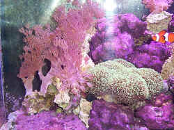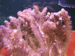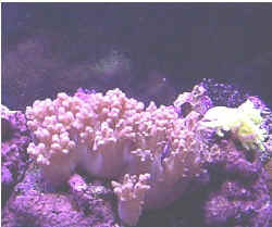 Coral Compatibility Is it O.K. to have these pulsing xenias this close to these green star polyps? <in the long run, it is not safe to let any corals touch. One will surely sting and kill the other colony. It may take days, weeks or months... but it will happen. Starpolyps are actually one of the most aggressive of the commonly imported coral (they don't look it but they are extremely noxious). Avoid letting them touch indeed> I think I read that the green stars might produce toxic chemicals. <an understatement> Also is it O.K. to have this Kenyan tree coral next to this piece. <again... no touching of any species> I think someone on your site said it might be a Sinularia species. <by the photograph I would agree. Kind regards, Anthony> Saving a Hammer My question is to whomever can help with this issue. My Hammer coral fell on my Galaxea today and it doesn't look good. Is there anything I can do to possibly save it? Thanks <be sure the Hammer coral is returned to its exact former place, set securely (use underwater epoxy if necessary), maintain very good/strong random turbulent water flow, add small daily doses of iodine to the water (regular weekly dose just fractioned for daily application) and observe carefully for necrosis or infection in the tissue. Extra water changes may be necessary to reduce mucus shed from stress. Best regards, Anthony> Torch Coral (Euphyllia glabrescens) placement I have a question about lighting requirements for the torch coral. Since placement on a sandy bottom is preferred, <placement on the sand bottom is neither preferred or recommended. This Euphylliid occurs only on hard substrates in the wild and will suffer if forced to purge sand deposited by sifters. The confusion may stem from the fact that such coral care best often in the bottom 1/3 of the tank under metal halide lights. Indeed... they do not like or require extremely bright light. They do however need weekly feedings with fine minced meaty foods> would it get enough light in an 20" tall tank even though I am only using 2 96 watt 10K power compacts? Thanks <it may not get enough light here, but you can compensate for the lack of light to some extent with extra feedings (weekly instead of a few times weekly). Best regards, Anthony> RE: Torch Coral (Euphyllia glabrescens) Elegant Coral Anthony, <cheers, mate> I think I may have been confusing Euphyllia with Catalaphyllia (elegance), this is actually what I wanted to know about. <ahhh, yes! You are correct my friend. Indeed they fare best on the sand bottom. The exception in the Euphylliid family> Can they thrive in low light conditions on the sandy bottom of the tank? My bad. <no worries... and yes, indeed they can thrive at the bottom of the aquarium. Especially if you have the purple tipped variety which is often indicative of a specimen collected in rather deep waters (60-80 feet down). The key to keeping elegant corals successfully is frequent feeding with very fine foods. They are one of the hungriest coral. If fed almost daily with small bits (never offer larger than 1/4-1/2 inch although they will take it), they will thrive and grow nicely. Your lights will be fine for this coral on the bottom of a 20" deep tank. Help all along with weekly water changes, good skimming and weekly changes of small amounts of carbon to maintain great water clarity. If you haven't read it yet... see here: http://www.wetwebmedia.com/fdreefinverts.htm and here: http://www.wetwebmedia.com/marlgtganthony.htm> Thanks Angelo <best regards, Anthony> Injured Chromis, Carpet Anemone, Corals Hey Guys salutations!.... <Salute!> I have a 150 gal reef tank with 3 Maldives clowns, 2 carpets, various SPS's, a school of 8 Chromis, and an Asfur. Today I noticed one of the Chromis' having one side of its scales ripped off by its gills. Its still active and eats with the school but is it a disease of some sort? <tough to say but unlikely... if so it may be quite a condition. Fears here of a Septicemia. Without a clear photo were speculating here> The Asfur does magnificently disperse the school periodically in a fit of rage but I have yet to see him actually nip at one. <statistically he'll succeed one day if he hasn't already...Ha!> My other thoughts are that I have lost 2 Chromis' to the carpets, I guess they stupidly float in there at night or something because on the afternoon after the disappearances my carpets spit out a meatless carcass of bones that suspiciously look like the frame of the Chromis. <indeed> Could this particular Chromis somehow brushed the side of its face against the carpet causing some blisters? <possible... but carpets are so potently aggressive I would expect a kill> Everything seems normal, but I will make a water change today just in case. Give it to me straight...thanks!!!! <OK... separate the anemone and other cnidarians (SPS corals and the like)... its a long term recipe for disaster (3-5 year plan). Noxious chemical warfare and the motile nature of the anemone> Oh yeah any good clubs to join in the Los Angeles area? <Absolutely... MASLAC at http://www.maslac.org/ I'll be speaking there in two weeks :) several other clubs in neighboring areas... SO CAL reefers, San Diego, etc> Regards, Dennis <best regards, Anthony> Coral competition <Anthony Calfo in your service> I have a few questions regarding competition for space in my aquarium. Which coral will win out over all for the space between an SPS coral growing next to a colony of polyps? <cannot be said in fairness categorically as each species is different. But in gross terms, Zoantharians (mushroom and zoanthid button polyps) are VERY aggressive and will often tame SPS corals. However, please do remember that corals forced to live close and combat are not necessarily win vs. lose. Sometimes both will suffer and or die after many weeks or months of being forced to compete> The polyps are zoanthids and the SPS coral is an Acropora that is growing branches. The Acropora is spreading out at the base