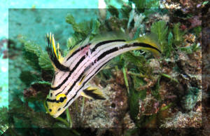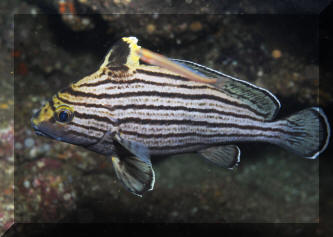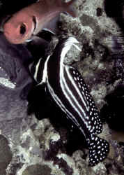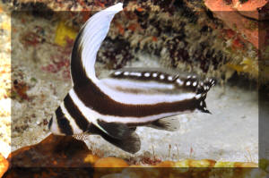 Selection of Specimens: 1) Size: Look for and pick only juveniles of a few (2-4) inches in length. Larger ones are often too beat from collection, shipping to survive long. 2) Apparent and real condition. Do wait a few days after arrival to assure the stability of the fish in question. Often they "look okay", only to die mysteriously a night or day later. Look to their paired fin origins for evidence of damage (reddening), but don't be overly concerned re damage to the dorsal. This area rapidly regenerates in healthy specimens. 3) Feeding: on the same note as above, be assured the potential purchase is feeding... on foods you have available, intend to offer. 4) Behavior/appearance: These fishes are nocturnal in the wild, and hide a good deal of the time in captivity. Healthy individuals should be moving about, under a ledge, not listing in profile. Aquarium Care: The Croakers, Drums are often offered in the trade as juveniles. Due to rough handling, their shy nature and soft bodies, this group of fishes is not easily kept in captivity. System: Something as large as possible and flat as practical, with plenty of live rock (for hiding and food production) and vigorous life-infiltrated substrate is necessary for croaker health and happiness. Don't try these fishes in new, barely landscaped, brightly lit aquariums. Water Movement: Need not be vigorous, as these fishes move about mostly by night. Foods/Feeding/Nutrition: Sciaenids are largely bottom-dwelling, night-feeding carnivores. In the wild, their diets consist mainly of benthic invertebrates and small fishes. They need to have their nutritional needs catered to in captivity, with such live, meaty offerings provided near or during lights out time. Starvation ranks very high as sources of mortality for these species in aquariums. Reproduction/Culture: The aquarium species and a few of the commercial food and game fish species of croakers have been spawned and reared in captivity (see Bibliography). All species produce pelagic eggs. Conclusion: Most Croakers are or get too large (and ugly) for aquarium use/interest. What's more, even the good-looking species too often live up to their common name and "croak" easily if/when collected as adults. One needs to study and prepare to successfully keep the popular High Hats and Drums... providing a large system with plenty of cover, and carefully training small specimens on live foods to fresh/dead fare. Bibliography/Further Reading: Bellomy, Mildred D. 1973. Ribbonfishes. Marine Aquarist 4(3):73. Hemdal, Jay. 1989. High Hats. TFH 5/89. Moe, Martin. 1975. Rearing the Black Drum. Marine Aquarist 6(3):75. Young, Forrest. 1988. The Florida Scene (column). Discussion of efforts to culture, hybridize High Hats. Marine Fish Monthly 3(5):88.