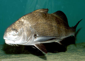 This is a vast family of some seventy genera and two hundred seventy species; most of which are more likely food fishes than ornamentals... due to size, lack of color/markings. There are some notable exceptions here in the way of some tropical West Atlantic Drums. About the common names; they're in reference to these fishes sound-production capacity. By stretching the muscles along their gas-air bladders, using the latter as resonators, very audible "croaking" noises are produced. I have fond auditory memories of hearing the White Sea "Bass" (yes in reality a croaker) off of Coronado Islands southern "Five Minute Kelp", as well as noisy times in Mission Bay in San Diego with the periodic migrations of Spotfin and Yellowfin Croaker schools there. Distinctive traits for the family are long trailing anterior dorsal fins in many species juveniles, notch-spaced spiny and soft dorsal fin portions, and their continuous lateral lines that extend to the end of the tail. Distribution: Found throughout the Atlantic, Pacific and Indian Oceans, some in brackish and even freshwater (28 species permanently). Some Aquarium Croakers: