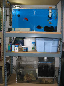 3-26-09 Ich Treatment Options 6/4/08 The Fallow Aquarium Approach To Fighting Ich! Hi, <Hey there! Scott F. in today!> I have a question for you. I have a standard 90g tank (48"x18"x24") with the following livestock: Purple Tang (3.5") Kole Tang (4") Foxface (4") Percula Clownfish (2") 3 Chromis (1") Anyway, for various unmentionable reasons (read: rushed quarantine) my Purple Tang is exhibiting the early stages of ich. <Uh-ohh..> I noticed maybe 3-4 white specs on his body and two on a fin. Because of this, I fired up the old quarantine tank (20L with hang on power filter) to isolate the tang. Unfortunately, I had to go out and pick up another 20L and a 10G to house the rest of my livestock, as I did not want to put them in with the sick tang for several reasons (space, no other fish has shown signs of disease). <I respect your logical approach.> I freshwater dipped the Purple Tang for 3 minutes and placed him in the 20L quarantine tank. He made it through like a trooper and after ~3 hours of recovery is swimming around in his tank. I managed to catch the Clownfish and the Chromis, and they are set up in an uncycled 10G for the time being. I am going to have to do a lot of water changes to keep the parameters in check on my 2 new quarantine tanks. <Yes, you will. For the future, I always keep a sponge filter or two in the sump at all times, colonizing beneficial bacteria, so that you've got one ready in a pinch whenever you need to set up a quarantine or hospital aquarium.> Anyway, I didn't have time before work to catch the Foxface or Kole. They are both skittish/nimble. I fear I may have to dismantle all the rock work to nab them. <Unfortunately, you might.> The Foxface is particularly skittish. He changes color when someone walks in view of the tank. I'm afraid that tearing apart the tank and fishing (ha) out these last two residents will leave me with painful puncture wounds and traumatized fish. <This is a definite possibility. It is truly important to get these fishes out of the display aquarium if you are going to attempt to affect a cure. Fallowing the aquarium is a successful technique, as it does create an interruption of the life cycle of the causative protozoa.> I have read about the hardiness/disease resistance of the Foxface, and I am trying to convince myself that it may be better to leave these last 2 in for the time being. Instead of tearing the rest of the tank apart, I could carefully monitor the remaining fish for signs of ich while monitoring the rest of the non-sick fish in quarantine (and treating the Purple Tang with hyposalinity). If either remaining fish were to exhibit symptoms, I would pull them out and dip/quarantine them. I have been checking up on the Purple Tang several times a day since he was introduced (fearing this scenario), and he was not showing any ich symptoms before this afternoon. The gist of my question is whether the benefit of immediate quarantine would offset the trauma the Foxface/Kole Eye tang would go through if I have to net them out. I'm also concerned with leaving any fish in the tank due to the lifecycle of ich (leaving the tank fallow to kill of any remaining bugs). Any recommendations? <Although your thoughts are certainly well taken, I am of the firm belief that you need to remove ALL of the inhabitants of the infected aquarium to assure yourself of the best possible chance of success. It's not fun, and it's certainly not easy- but it is the best (and ONLY) way to go if your intention is to successfully break the life cycle of this nasty protozoa. The bottom line is that if Ich is in your system, it's IN your system, and fallowing the tank is the best way to address the problem, IMO. Best of luck! Regards, Scott F.> Crypt success (fighting the war on many fronts) -02/20/08 Hey guys, <Wes> I just thought I'd email you about my recent success with marine ick (Cryptocaryon irritans). Many of my techniques have been taken from your pages, so I need to say thanks and maybe give someone going through the same thing the best shot at kicking ick. <Please do> Okay, here's the story. I was given a black ocellaris misbar clown on very short notice. I used well cycled rock from another system and setup a small quarantine (5 gallons) with a Prizm skimmer and an angstrom 4 watt UV (just a trickle going through this unit). I FW dipped the clown for ~12 min (I've discovered my tap water is just for FW dips--pH over 8.0, with a fair bit of hardness, so it's easy to temp and pH adjust). For the last two minutes of the dip I added a drop of formalin. I then rinsed him in SW and added him to the tank with rock and just a spattering of sand, to act as a substrate for the crypt when it drops off. The next few days were HAIRY, with the clown looking as infested as I've ever seen a fish (and I've lost a round of fish to crypt) and barely eating a tiny amount every now and again of crushed pellets (nothing else, and I tried EVERYTHING). I tried to feed small amounts as often as I can to help him beef up a bit. Each evening, when as many of the hosts dropped off as I thought would for the day (I also do an increased photo period, it seems like more hosts drop off later in the day) <Interesting> I did a 100% water change, being careful to take out EVERY bit of water and sand in the tank. I also gave the rocks a good rinse in some extra new water to help dislodge the crypt. Over a few days I went down to hyposalinity levels (1.008-1.010 and put the clown in another FW bath while I changed the water, being very persistent with removing all of the sand, where hopefully the parasites attached after dropping off. I also did my best to shake off every bit of loose stuff from the rock before replacing it in the tank. Each night I added a touch more sand to replace the sand I'd sucked out and repeated this until the clown appeared ich free for several days. I am now doing regular water changes, slowing bringing him up to 1.026 where I keep my tank and feeding heavi