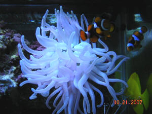 Ich dilemma 10/20/07 Great site! - If I would only listen and take the advice! <Hi Steve -- Brian here, Thanks for the compliment!> Here is the issue: 60 gallon display tank with Whisper 60 powerfilter , red sea protein skimmer (useless), Fluval 404. <If properly setup, the RedSea skimmer will be effective in your system> Crushed coral, one small piece of live rock 36 inch light 'perfecto light' bulb 30 watt 1 Condy anemone, 2 small mat anemones, 1 brittle star, 1 turbo snail, 1 tiny sea star 3 inch yellow tang (ich), a 2 inch cinnamon clownfish Temp. 81, pH 7.7, kH 7, 0 ammonia, nitrite, nitrate Tank has been running for about 1 year with the cinnamon and inverts. Added yellow Tang about 2 weeks ago, did not quarantine (stupid!), he now has ich. <Zebrasomas are famous for this!> I have a 10 gal and 20 gal quarantine tank set up (won't make the same mistake again) <Way to go!> What would be your approach to this situation? If I remove and treat the yellow in quarantine -- will I still have ich in the display tank? <Yes> If so, how would you treat the display? Should I remove the inverts and treat the display? <No> Should I remove the fish and leave the display with inverts only? Would this 'starve' the ich? <Removing the fish will eliminate hosts for the free-floating stage of the Cryptocaryon life cycle. They can survive for just a few days without a host. There is another stage prior to the free floating stage in which the parasite resides on the substrate. They can survive for up to 2 weeks in this stage. Plan on keeping your fish in quarantine for 4-6 weeks to make sure that the parasites have completed their life cycle and died off in your display tank.> Should I remove the yellow and the cinnamon to quarantine together and treat for ich ?(malachite?) <If you can remove both fish easily, place them in a quarantine tank and treat them. I would recommend using copper. You may be able to effectively kill the Cryptocaryon that are attached to the fish. However, if there are still Cryptocaryon in the first stage (cyst attached to gills - this is how they got into your tank in the first place) treatment may NOT be effective.> I could remove the inverts to the other tank and then treat the display or leave it fallow. <No, No, No'¦let's do this by removing the fish and treating them. At a year old, your tank is established and whether you know it or not, has many microorganisms working for you. If you remove the inverts and treat the tank, you'll probably end up killing these creatures. Before you start your treatment, take a look at this article: http://www.wetwebmedia.com/ichartmar.htm > Thanks Steve Salek <Good Luck Steve! Keep us informed -- Brian Griffin> Ich, Inadequate Environment, Poor Advice from LFS, More Research Needed -- 10/9/07 First off, let me say that I love your web-site! <Good to hear!> As a newcomer to the saltwater fish hobby, it has been extremely helpful. I am hoping you can help me with what I am sure is an Ich problem in my fish tank. I purchased three fish (regal tang, anthias, and longnose butterfly) a couple of weeks ago from one of the few stores that sells saltwater fish in my area. I currently have a 55 gallon tank and a 10 gallon QT tank. I was told by the store owner that my 10 gallon QT tank was not big enough to hold all three and he suggested putting them in my main tank. <Your main tank isn't big enough for these fish either. Three fish is also too much to add at one time.> My main tank had been set up three months prior, and everything was going great, water parameters stable, all fish and invertebrates doing well. Current stock of fire shrimp, two peppermint shrimp, blue-tipped anemone, <A 3 month old tank is not an established aquarium. An anemone needs an established, stable environment. It is recommended to wait 6 months to one year before adding an anemone. yellow tang, <This is much too small of a tank for one tang, let alone two.> clownfish, Chromis, and a leather soft coral. When I went home to add the three fish, all floating in the store bags in my main tank, I noticed a white spot on the butterfly fish's tail, so decide to put him in the QT tank. I brought a picture back to the store and asked him if it was Ich. He said it was not and to net the fish and gently rub off the white spot and to quarantine the fish for a couple of weeks. <Yikes!> I did as told and after no more signs of trouble, added the fish to my main tank three weeks later. <Three weeks is not long enough.> After about 5 hours of the fish being in my main tank, he had multiple white spots on his fins. At first I thought maybe this was just sand that had been kicked up from my gravel cleaning and water change prior to adding him. <You're using gravel?> I then turned off the skimmer thinking maybe it was just tiny bubbles. I am afraid that was not the case. I returned him to the QT tank later that evening, and added CopperSafe at the suggestion of a co-worker who has a 250 gallon for 10 years now. He seems to be doing great. However, a day later my regal tang is showing signs of Ich in my main tank. I am now afraid that I have an Ich infestation in both tanks. <You sure do!> I purchased a bottle of Ich-Attack from another pet store and was going to add it to my main tank. It says it's safe for invertebrates, but after talking with the store owner where I normally purchase from, he says that it is not an effective product. He also said that he thinks the Ich was in my main tank to begin with and that the only thing I should do are keep my water quality high and feed the fish well. I am afraid that my Regal Tang is going to continue to get worse, there are more spots showing up. Luckily none of my other fish are showing any symptoms. What should I do? <Return them. A 55 gallon tank is much too small for Tangs, Longnose Butterfly, and Anthias. Research everything before you purchase. You can't depend on the advice given at the LFS. It is your responsibility to know the requirement