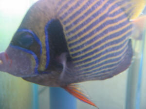 Blond Naso Tang & Raccoon Butterfly NEEDS HELP! Actually, need useful, pertinent knowledge NOW! Thanks for providing such a great library to aquarists and I am a newbie to this hobby. <Welcome> I have setup a saltwater tank for 3 months. 40 G tank, 20 lbs live rocks, 40 pounds of live sand, 304 filtration system, 200W heater, a 300 level powerhead and a spinning 360 rotation outflow jet. (should I connect the air tube to the powerhead to release air stone?) <Likely not... too many bubbles can be more than annoying> Readings: 0 ammonia, 0 nitrite, 10 nitrate, temperature 82 and gravity 1.019 (I adjust it because I believe my tank has a ick infestation), pH 7.8 (I have problem to adjust it any higher.... Does I pour liquid calcium into my tank to pump it up slowly?) <Mmm, no... better to adjust your pre-made, stored change water to be a bit higher in pH...> Livestock: 1 Pepper shrimp (1 inch), 1 algae eating crab (3 inch), 10 snails 1 8-line wrasses (3 inch) 1 Maroon Clown (2 inch) and 1 Ocellaris Clownfish (1.25 inch) and they swim, eat and sleep together happily. 1 orange spotted Goby (3.5 inch) 1 baby Raccoon Butterfly (2 inch) 1 Pajama Cardinalfish (2 inch) 1 Blond Naso Tang (6 inch) <... this tank... a forty gallon... three or four feet long... is too small for a Butterflyfish, or Naso tang...> 1) All fishes are eating well except my butterfly, he/she is really a picky one that only sampling Mysis shrimp and brine shrimp with Garlic Guard on it. He/She keeps shaking and always stops besides the Goby and ask for help but I don't believe the Goby is a cleaner type. He has some white spot on its fins and body (coming on and off). At least he is willing to take food with his own preference! What should I do? A freshwater dip (with Methylene Blue?) or quarantine it? <Maybe... but really has to be placed in a larger system... will not survive in the forty> 2) Second is my Blond Naso Tang, I bought her for a week already and I put her to the main display 2 days ago. She is really a hot eating machine and she accepts all frozen meaty foods and Marine Green 40 but she doesn't willing to take any seaweed algae. I put the seaweed in a clip and hang it on the glass but she just ignore it totally.... is she healthy in long run? Yesterday, she starts to have black and white spots all over her body and fins. I took a 1 minute freshwater bath for her and it doesn't help much. She seems healthy and not being stressed (colour always stay at light grey). I start to a drops of Marine Zoe to the frozen food and helps she can win the battle. <This fish needs to be moved to larger quarters also... ASAP...> 3) Should I introduce a cleaner shrimp to the tank? <Perhaps... but you'll still have to get a larger system, or return, move some of the fishes> The peppermint shrimp keeps hiding and I rarely seen it come out from the cave or should I get a cleaner wrasses and hope it can cure 2 of my beloved fishes? <No> Honestly I don't want any other fish since this tank is crowded already and the new cleaner fish might get infected by ick also .... <...> I have a QT but there is a yellow tang inside (2.5 inch) since he keeps chasing the butterfly. I am planning to raise this bully one in QT from now on (10G tank with 5 pounds live sand and 6 pounds live rocks)..... Or do you think I should put the yellow tang to the display tank and put the butterfly and Naso to the QT for medication? Thanks for your help..... <Please... stop... buying livestock, drygoods... other than books let's say... and read. You need to understand your ich/Crypt situation, solve the overcrowding, mis-stocking... situation you've caused. Realize the importance of environment, environmental interplay in parasitic (and other) disease etiologies... Please read on WWM re Ich/Cryptocaryon, systems for Naso Tangs, Butterflyfishes... Either get a much larger (six foot) system or return the tang... now... Read re limiting parasite infestation, dips/baths... Bob Fenner> Sticking It To Ich! (Ich Treatment) Dear Bob, <Actually, Scott F. in tonight> I have had a Lemonpeel Angel in my quarantine tank for 5 weeks now but I am scared to death to put her in my display tank. At this time, my QT tank levels are Ammonia 0, Nitrate 20ppm, Nitrite was <.3 but it is starting to go slightly higher after I started lowering the salinity ( will talk about this further down), Ph 8.0 in AM and 8.1 by PM, Calcium 380, KH 17 drops (all tests done by Tetra test kits). <Well, I hope that the trend on nitrite is down...> My QT tank consists of two Marineland 125 BioWheel filters and a hiding place for her to go to. Before I bought her, I cycled my quarantine tank with 2 green Chromis for 2 months. <An unorthodox way to cycle a quarantine tank, but if it did the job...My preferred method is to keep biomedia in the display tank's sump at all times, so you have fully "colonized" (by beneficial bacteria) filter media ready to go whenever you need it. Then, you simply fill the QT with water from the display, and you're ready to go.> When levels looked good, I did a 20% water change on the 10 gallon QT and off I trotted to buy my Lemonpeel. After 1 week in the QT tank my levels started to go goofy. I started doing 3 gallon water changes a day to keep ammonia level etc. in check. Well with all the water changes and goofy levels, I think she got ick. <Bummer. But, the saving grace is that this happened in the quarantine tank where you can easily treat> When you look at her you only see white spots on her side fins and some on her tail. She would also swim through the water shaking her head like she had something rattling around in it and when she scratched she would scratch around her gills and eyes. Well, I figured the first thing I needed to do was get my water quality under control so I did a water change and added some bacteria enriched live sand. My water levels stabilized but her itching continued. <Good on the water quality issue, sorry to hear about the disease situation.> Nex