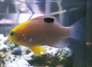 Sick Chromis I have a green Chromis that is having some trouble swimming/breathing. As per Scott F.'s advise I have moved him to a qt tank. I now have some additional questions. First of all since he is having trouble swimming should I leave the powerhead off to give him a break? or would the reduced flow rate be worse? <I'd keep the powerhead on, maybe at reduced flow, to keep some circulation going in this tank. In fact, if the powerhead offers an aeration feature, I'd utilize it.> He hasn't developed any white spots, but I wanted to do something. I went to the LFS, and got a pH so that I could match the pH for a freshwater + Methylene blue dip (I also bought the Methylene blue), but upon returning home I realized that I had bought another saltwater pH kit and therefore had no way to test the freshwater's pH. I felt stupid, but wanted to do something so I did a saltwater + Methylene blue dip. I know this won't be as effective as freshwater + Methylene blue, but it's better than nothing, right? <Sure- the antibacterial properties of Methylene blue will still work in saltwater.> After the dip (which went well at 15 min.s with no signs of stress, for him or me; not bad for my first dip) I could see tiny particles laying on the bottom of the bucket. Could these possibly be the parasites that have infested my little buddy? Or would they be too small to see with the naked eye? <Well, hard to say...If it is Cryptocaryon, it's unlikely that you'd see the actual parasites...but you never know. The material could have been body slime or mucus, or some type of precipitate. But you never know!> Oh, also the LFS was out of copper and doesn't sell copper tests, I was informed by the owner that he doesn't believe in testing (too bad he's the only one reasonably close to me) <YIKES!! With "friends" like this...yuck...> So, I am looking online, could you recommend a good test kit brand? Also are there better brands of copper? Or is copper just copper? <I like Cupramine by Sea Chem, and CopperSafe by Mardel. Both are good quality, IMO. As far as a test kit for copper, most of the ones that I have seen on the market are pretty good, IMO. Now- I like copper, but I wouldn't rush to use it unless you are certain that you're dealing with a parasitic infection. Some fishes do not do well with copper, such as pygmy angelfishes. Anyways- with your fish- be sure to keep up good water quality during his quarantine, supply high quality food, and observe closely. With time, and a little TLC, this guy can make it! Good luck! Regards, Scott F>> Thank you for your time -Luke Chromis Lost His Zip? I just noticed that one of my green Chromis seems to be stuck on the bottom of the tank. He is tucked away in the back corner of the tank swimming feverishly, but is barely staying off of the bottom. His breathing is also labored. I tried chasing him around with a net to see if he could swim, but he couldn't seem to stay suspended at all. His color has paled, and I don't know what to do. Luke <Well, Luke- the fact that the fish is having difficulty breathing and swimming is definitely a sign that something may be wrong. I would highly recommend removing this fish to a separate aquarium for observation and possible treatment. Look for outward signs of infections, such as excess body mucus, whitish film or spots (I'm thinking about Amyloodinium or Cryptocaryon here). If he does show signs of either of these illnesses, it is necessary to take quick action to save this fish's life! You could try some freshwater dips initially, and then utilize a commercial copper sulphate treatment if you are indeed dealing with either one of these diseases. Do read up on the disease FAQs on the wetwebmedia.com site for more information on these illnesses. You can help this little guy with quick, decisive action! Good luck! Scott F> Damsels In Distress? I have some blue damselfish with yellow tails. Sometimes they get faded spots on their sides? Is this a sign something is wrong, or is this normal? Thanks for the input. Ondrej Havrda <Well, Ondrej- it's hard to say from here. If the fish are experiencing these spots continuously, without other symptoms, it could be some minor external abrasions or something. On the other hand, you could be observing some type of fungal infection, or maybe even the onset of something more serious. I'd take a look in the disease FAQs on the Wetwebmedia.com site to see if any of the diseases described fit the description of what you're looking at. Good luck! Regards, Scott F> Re: sick Chromis thanks once again for your help. i had 3 green Chromis in my qt, and all was fine for over a week. then one day i noticed one wasn't schooling or eating and breathing rapidly in the corner. then next day it was dead. <Sounds like Amyloodinium. AKA velvet> the other 2 were ok for a day more. then the same thing happened to another one. now its been 3 days since the 2nd died and the last one seems to be fine. eating a lot and swimming fine. no white dots or fuzzy stuff <Definitely velvet> and no visible isopods, the fish looked perfectly normal, just rapid breathing and sitting in the corner. i dissected the 2nd one and didn't see anything that looked like a parasite (with my crappy magnifying glass). any idea what this is? <Definitely and obviously (from your description), velvet> could it have been something they had or did my qt tank have something? i have a bi-color blenny that lives there full time and he seems fine through the whole event. <He's a really tough critter> or could they have had something all along that just got the best of them after a few weeks. they were eating and very social for the 1st week. my water parameters in qt check out fine too. if you do have an idea what it is, can you recommend a dip / medication? my thoughts were flukes, but since the 3rd seems ok, i didn't know how contagious they were? thanks again, Neil <This is just as contagious as ich. Please sterilize your tank before adding more fish. 