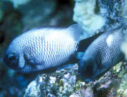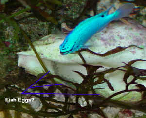 Damsel eggs - 9/20/07 Hi <Hi> What color are 3 stripe damsel fish eggs, <Sorry - not sure about that, but they're very small (<1mm)and darken as embryo develops. Hatching occurs in around 3-5 days.> and does the dad take care of the eggs, or will he eat them? <He will guard them/aggressively chase away any potential predators. Please see these links for more information re: http://www.wetwebmedia.com/dascyllu.htm http://www.wetwebmedia.com/damselreprofaqs.htm http://www.breedersregistry.org/database/DASARU01.htm http://www.fishbase.org/Summary/SpeciesSummary.php?id=5110 > Thank you <You're welcome -Lynn> Sexing Pomacentrus coelestis I have searched high and low on the net. How can I differentiate male from female of this sp. ? Any and help is more than appreciated. Thank you for your time. Nicholas O'Connor <Most Pomacentrids can't be sexed externally... including this one. This genus lives in social groups of a few individuals... Bob Fenner>