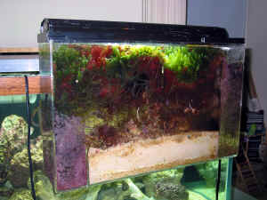 [Photo by Lorenzo Gonzalez] caption: "Deep sand bed strategies have opened up entirely new dimensions for keeping previously challenging fishes, plants and invertebrates." The use of deep substrates in the marine aquarium has evolved remarkably in the last decade. In the broadest definitions of the strategy, an aquarist can use a wide range of media and grades. The most popular application to date has been with fine aragonite sand at static depths of 3" (7.5 cm) or more. Some folks have also incorporated "plenums" under their substrates with hope for added benefits (more about this below). Without a plenum or any other modification, however, the methodology is still simple, natural and can be quite beneficial to the aquarium. Deep sand beds, also known as DSB's, have many benefits beyond the aesthetic. Indeed, there are an increasing number of sand products available to help replicate most any biotope imaginable: snow white and sugar-fine oolitic material from the Caribbean, black sands alike Hawaiian or Indonesian beaches, pink sands that are reminiscent of a Samoan paradise, and many other natural media that include attractive whole and broken shells, for example. Compositionally, any substrate you choose is almost certain to be made of aragonite or calcite. Both are forms of calcium carbonate, but arguably aragonite is to be favored for it's better solubility and buffering capacity in seawater (providing necessary bio-minerals, buffering pH, and supporting calcification). Aragonite can begin to dissolve, in fact, at a high pH over 8.0 (a still safe level for marine life), while calcite does not readily dissolve until the pH falls well below 8.0. This means that calcite is not likely to impart any significant benefits (buffers/alkalinity) into the water until the pH falls to a level that is too dangerous for most marine life. In this regard, the old argument of dolomite & crushed coral versus non-calcareous freshwater "gravel" for marine aquariums in the early days was a moot point (they were all calcite). The extent of calcareous sand benefits, in part, is influenced by the grain size of the media. To generalize, finer grains dissolve more readily and afford greater biotic activity collectively. Course sands and gravel, on the contrary, are slower to dissolve while being more likely to trap detritus to excess. Any grain size desired though can ultimately be managed and kept "healthy" with adequate water movement in the system, and sand-stirring (naturally, by life forms in the tank, or assisted by the aquarist). One of the principal benefits to deep sand bed methodologies is the potential for natural nitrate reduction (NNR). The speed and extent to which a DSB can reduce nitrate in an aquarium amazes many aquarists… especially those that have struggled with nitrate control for any length of time through other means. The benefits to an established tank with the upgrade to a DSB are apparent in just a few weeks with potential for complete nitrate reduction (to "zero")! Many theories and recommendations abound as to how best NNR can be achieved. We do know that good denitrification is less likely (but not impossible) to occur in shallow sand beds (less than 3"/7.5 cm), and with course sand. Some of the difficulties and criticisms of failed DSBs may be fairly attributed to such intermediate sand depths (1-3"/25-75mm) where the substrate was neither deep enough for efficient denitrification, nor shallow enough for thorough nitrifying activities. This condition is mitigated by the all too common lack of adequate water flow in some marine aquaria. Strong water flow is critical in most any marine aquarium. Aspire to provide at least 10 to 20 times the tank's total volume per hour in water flow for your aquarium. The ocean is a dynamic environment! When nitrate control is your primary ambition, use deep fine beds of sand. Smaller aquaria (under 75 gallons) should employ at least 3" of media; larger aquaria will benefit from 6' (15 cm) or more. [photo by Christine Gonzalez] caption: "Regardless of where you install your deep sand bed (in the display versus a refugium), you can enjoy the benefits of significant natural nitrate reduction (NNR) and plankton production." Another significant advantage to deep sand beds is the provision of a dense and natural habitat for numerous micro and macro-organisms. Many fishes and invertebrates cannot be kept successfully or at least optimally without a DSB. Some popular wrasses, jawfishes and gobies… horseshoe crabs, sea cucumbers, stingrays and many other featured creatures will not thrive without thick sandy substrates. Countless invertebrates including some corals will only survive on a sandy seafloor (hard substrates like rock are inhospitable to their feeding strategies and polyp cycles). At various and increasing depths, DSBs provide natural foods for these fishes and reef invertebrates like microcrustaceans (amphipods, copepods, mysid shrimp, etc), bacteria and other nanoplankton. DSBs also provide habitat for desirable plants, algae and animals. Seagrasses like Thalassia and Syringodium (Turtle grass and Manatee grass) for keeping seahorses, pipefish or Cassiopeia (Upside down) jellyfish, for example, require very deep beds at 6" minimum. The limitations and potential pitfalls of employing a DSB's are far less mysterious or unpredictable than previously thought. In fact, deep sand bed methodologies now have a history of more than 20 years in use and may fairly claim to be regarded as "tried and true". Your first decision to make on contemplation of the strategy is purpose. Although you will likely enjoy a combination of benefits with any interpretation of the strategy, some methods are more effective than others in various aspects. Choose from the above described potential benefits and focus on which ones suit you best: aesthetics, nitrate control, or plankton production to begin with. If your purpose for using sand (in contrast to course gravel,