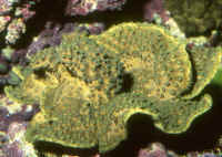 Fading pagoda I have a yellow pagoda coral, sorry no pic. <There are two main types of "pagoda" coral: Turbinaria reniformis and t. peltata. T. reniformis is commonly yellow in color, has a thin but dense skeleton, and grows in a turbinate form (whorling plates). T. peltata usually only forms a single cup shape but can also have a few "whorls". The skeleton is thicker than that of the former and has big bushy polyps. T. peltata does not have a yellow color morph, so if you have this species, it's most definitely dyed.> I have a it about a week or so. all my levels are right where there supposed to be. its at mid tank in my 55g. I have a HQ1 150Wx1 MH. its seems to be fading fast on one side of it. doesn't seem to be dyed, the other side of it is keeping its vivid color. <Sounds like the halide is bleaching it. Put it off to the side in low, indirect light for now until it regains it's color. Only then should you try to begin the slow process of acclimating it to your lighting> it does have die off on the outer edges of it though, from when I bought it. any info would be great on what you would try in this situation. <Eh, I wouldn't worry about the dead spots unless some algae got a foothold and started encroaching on the living tissue. Good luck! -Kevin- > Thanks, IRV Purchase of new Turbinaria 4/24/03 Dear Crew <cheers> I have recently spotted two nice specimens of Turbinaria in my LFS. <if brown varieties (T. peltata like cup/chalice and pagoda) then very hardy... if yellow varieties... they need very strong flow and very bright light (!) likely> I have reserved them for a later purchase. I have the following system, 130 gallon 72x24x18. 4 60 watt arcadia lights (1 actinic) and 1 T5 80 watt blue white mix tube. <too much blue here for optimal coral growth... but nice aesthetic> I recently upgraded with the T5 and am wondering if this extra light will be too much for the cup coral I am about to purchase. <not even for the T. peltata if acclimated slowly... they are very adaptable> Also I have the other following stony corals :- 1 small Favia 1 Euphyllia 1 Porites 2 colonies of candy cane coral Various leather corals <other than the Porites perhaps... none of the above are very high light corals (no MH required here)> The cup corals will be placed away from all these corals (6 inch spacing), and I feed all my corals every other day with plankton and fine mussel. Any advice on the survivability of this coral would be helpful, i.e. placing etc. <depends again on species... T. mesenterina/reniformis are more difficult> I also have a high fish population of 1 flame angel 1 yellow tang 1 Midas blenny 1 maroon clown 1 Dottyback 1 mandarin Will this stock affect the cup corals life and survival? <likely help by providing food/feces> regards Jim Griffin <kindly, Anthony> Dyed yellow Turbinaria 2/26/03 Greetings to the crew. Your site has helped me so much I can never repay you enough except to say that my 55g reef is doing well now and will buy all your books (not a plug) in the future. <thanks kindly <G>> I did make the mistake of purchasing a yellow Turbinaria p. From your site I now know this animal has probably been dyed. <not too bad... it is on of the few corals that can survive dying because you can feed it (and must)> The LFS of course told me it was a rare specimen and at 25% off I would kick myself if I didn't buy it. <wow... that clerk was a real scumbag> Now I am kicking myself right in the.... Anyway the specimen looks mostly a pale brown color except for the extended polyps that are bright yellow. My question; the polyps extend every day and they seem to be accepting food <excellent! that's most of the battle> (I use a blender to mix krill and phytoplankton then turkey baste). I noticed today a small, about 1/2' round area on the very edge of the animal that is turning red. <I have seen some specimens issue a red/burgundy growth edge instead of a doughy pale colored one> Any thoughts on what this might be and what measures I should take? <if the tissue doe not look necrotic, it may be natural. Do send a picture if you can> There are no other bothersome fish or animals in the tank. Water checks out great, skimmate daily, some iodine and calcium added weekly. PH 8.4, calc 475, sg 1.024, etc.... Any help would be appreciated. <keep strong turbulent (not linear) water flow over this specimen too for optimal polyp extension. Anthony> Coral ID- Yellow Scroll coral 2/9/03 Hi Bob, or whoever answers this. <Anthony Calfo in your service> What is the name of the hard coral in the 5th picture down on the 'Marine Maintenance' page? <Turbinaria mesentaria- Yellow Scroll coral. It is very hardy and very weakly aggressive (protect from other corals with, say, a 25 cm buffer zone). It does not/cannot feed on prepared food (polyps are too small... requires nanoplankton and dissolved organics), but does require very bright light and very strong random turbulent water flow> I bought one of these from a bloke who was giving up the hobby, but he did not know the name. I have had it now for several months and it is doing fine. Many thanks Colin <excellent to hear. Its not an especially fast grower... but will let you know promptly when nitrates are too high or light is too low by turning a darker (golden/brown) color. No worries on polyp extension here... it is weak and usually just at night. Best regards, Anthony> Feeding Tubastrea Sun Coral Do you have any tips on feeding a sun coral (Tubastrea)? I can't seem to get the polyps to extend so I can feed it. Thanks, Alan <much has been written on this subject abroad on the 'Net. I also have a section in my book (Coral Propagation) for feeding Tubastrea with a slurry in a basin. For starters, train the polyps to open by simply putting a little bit of meaty juice (tablespoon) from thawed frozen food (Mysis shrimp) into the tank at the same time every night. Do this for a week or two until the animals is trained to open and wait at that time. Then introduce 