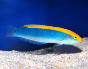 BF spot, Dottyback color loss, Centropyge feeding in QT 7/12/06 Thanks for your prompt reply, <Please include prev. corr...> I have done as you said and given my copperband with a freshwater dip mixed with M/Green. He has a parasite attached to his front left fin, I hope it will come off after a few more dips. But he is looking much better after the first dip, the itch has receded significantly. And he's eating well as usual. <Mmm, a parasite? Might just be a "spot" from bumping into something... I'd try a purposeful cleaner organism... perhaps a Lysmata sp. shrimp... Gobiosoma goby...> Now onto my Dottyback. He has lost a lot of colour, when I got him he was a bright magenta and yellow, now he's faded to a dull purple and yellow. I have been told this is due to him not being the dominant fish in the aquarium, as the Anthias don't seem to like him too much and chase him sometimes. <Possibly a/the factor here> I feed him Mysid shrimp, brine, algae flakes, angel fish mix, ocean plankton, pretty much whatever I can get my hands on, and he is still showing no signs of his original colour. Any suggestions? <Spectrum pelleted food/s> My final question is about my eibli angel, which is refusing to eat Mysid shrimp, marine algae, brine shrimp and flakes. He is in my QT tank atm, and I'm worried that he hasn't eaten for 2 days. I am not treating the tank with any medication so I am thinking of buying a small piece of live rock for him to nibble on. Would you suggest Nori too? <Do add a good deal of ready-cured live rock with obvious algal growth> I'll just like to add that you guys provide a valuable service and your advice is greatly appreciated. Thanks. Albany <Welcome. Bob Fenner> Florida species giant pink tip anemone and Green Wolf Eel 12/28/05 Just a quick question, I have had a giant pink tip anemone for about a year now it is thriving very well. I have two questions, is it rare that this species would actually bond with a greenish wolf eel, <Not unheard of... this Pseudochromid is very interesting in its behavior> my eel has become non-sensitive to its stings and actually lays in it, next to it and will even go as far as steal food right out of its mouth! <Interesting> My second question, do these anemones have eyes, because I have been feeding shrimp to everyone recently including the anemone and the other day I walked up to the tank to feed and before even opening the lid the anemone rotated quite rapidly to face me---a bit creepy, bad enough having a greenish wolf eel that begs for food all day but now is it possible the anemone can see me outside the tank? <I don't think so... most anemones do have something of a general light sense, but not long-distance, nor quick in their generalized motions... like our government> Thanks for your help, Jeannine <Thank you for writing, sharing. Bob Fenner> Pseudochromis paccagnellae 3/1/05 Hello again, Ross here!!! First off, THANK YOU for your excellent help and knowledge you've provided me!! <you are very welcome my friend> I can only hope that after a LOT of research and questions, I'll have the knowledge you people have!! <We'll look forward to you volunteering to be a crew member soon, yes?> My question is about my Royal Dottyback, Napoleon!! < a very fitting name for most any of the Pseudochromids> His name obviously stemming from his small size, yet aggressive behavior. I was wondering, if Napoleon is slightly aggressive now, will he remain this way, or become even more aggressive later on? <yes, yes... and perhaps yes> I plan on moving him and my other fish to a larger tank with plenty of rock and space, but was wondering if he'll remain this way. He's not all that aggressive now towards the other tankmates, however I was curious about later on down the road. Thank you again for everything you've helped me with!!! Ross <this wonderful and hardy group of fishes is unfortunately rather scrappy. They tend to get meaner with age. Anthony> Bicolor Pseudochromis 7/4/05 I recently purchased a bicolor pseudo to put in my new 29 gallon tank. I originally had a 20 and moved it up to a 29 gallon and had no problems transplanting everything over. When I put the pseudo in I realized I didn't buy him any meaty food like everyone recommends, so I went back to the pet store to buy some. When I returned I couldn't see him anywhere and went ahead and added to Mysis shrimp I bought. All of my other fish seem to like it a lot, but I never see him come out to eat. I am wondering if I should worry or whether he is already dead. <Or jumped out...> I don't know if they tend to hide most of the day or what, but I haven't seen him in about two days and want to know if my fish is ok. Thanks for your help. <Dottybacks do hide quite a bit, especially when new/moved... but I'd be looking about the outside of the tank, for a smiling cat... Bob Fenner> Confusing Behavior Hi Bob- <Hello> I have a 30 gallon Eclipse tank with the under the hood filtration and bio-wheel system it shipped with. It's stocked with one small 1 1/2 inch Maroon Clown and one Dottyback (Diadema) for the fish, and a coral banded shrimp, a couple of snails and 3 hermit crabs for cleaners. <Okay> Everyone has been happy so far (with the clown being added 2 months ago as the last arrival). My concern is with the Dottyback. The fish has always been healthy and eaten like one twice its size, and still does. But suddenly a few days ago, he started rubbing/flashing up against some shells and the heater occasionally. Also his purple stripe coloring has slightly faded in a couple of spots since I purchased him, but have read that this can happen. <Good observing> After consulting your book The Conscientious Marine Aquarist (best present under the tree!) I see that this flashing behavior is listed as a symptom for some diseases. He has shown no other symptoms of disease such as white spots, rapid breathing, listlessness etc. and I wondered if it could be something else. <Maybe "just scratching"... a pretty com