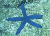 Selection: General to Specific Here's hoping you're ready for some large to smaller generalizations sure to please few and torque off most all collectors, dealers and their intermediaries. Most of this is reiterated/re-enforced in subsequent smaller taxonomic articles on the group. Most broad: 1) Don't buy "new" specimens. Leave them at least a few days at the shop if at all possible. Echinoderms can and do die quickly, mysteriously, without prior indication. Most of the massive mortality with the group occurs within a day or two of arrival. Wait. 2) Avoid at all costs specimens with whitish, necrotic spots and patches. These are most likely infected with bacteria, fungi and possibly debilitating parasites. 3) This may seem contradictory with #2 but don't necessarily disqualify a specimen on the basis of broken spines, or even chipped mouth parts. This group has a renowned regenerative capacity. If the individual is otherwise healthy and placed in a proper setting, it will repair. Crinoids, Sea Cukes and most Urchin species should not be tried by any but the steady of hand/mind, large of wallet, most careful, serious-most aquarists. Sea Lilies are sometimes expensive finicky eaters... Cucumbers are notorious for "getting agitated" eviscerating (polite scientific term for throwing up their guts, gonads,... you get the idea), otherwise dissolving and taking everything with them in the entire co-mixed system, fast!... Some Urchins are very dangerous to handle as mechanical devices, toxic stinging, venomous, not-so-nice-and-innocuous as they may appear... Many Seastars are okay. There are some notorious exceptions like the Crown of Thorns (Acanthaster) and a few others. What a fun group, eh? For the most part this is the group with the most demanding need for high and consistent water quality. No toxic metal concentration. They will be the first to show ill effects and kick. Environmental: Conditions Echinoderms are aerobic organisms; although some may stand extended periods of low levels of oxygen or exposure to the air, others do not. Many, many members of this phylum are lost to simple anoxia. Keep their systems well-aerated and circulated. Habitat Some study of the bio-type of your charges is encouraged. Approximating the physical make-up, lighting, circulation et al. will contribute to your success. Such information is accessible through accurately researched periodical literature, hobby, trade and scientific publications available through the pet trade, public libraries and colleges. Chemical/Physical As previously alluded to, the term "steno" (=narrow) versus "eury" (=broad), and steady define the tolerance and necessary consistent parameters in keeping most of the commonly available species. Several urchins and stars could qualify for the miner's "canary in a cave" as ready bioassay organisms. Pre-mixing synthetic water mixes, matching such "windows" as pH, KH, temp. are more critical... Biology/Other These "lesser deuterostomes" are amazing in many aspects. They are the next most closely related group to that which includes (gulp!) us, the chordates. Their embryology, genetic development and outright physiology is very similar to sea squirts, fishes, other notable quadrupeds and the aforementioned mammal. There is even a swimming sea cucumber. Watch out! And strange goings on with vast numbers of Stars, "walking" Sea Cukes, Urchins et alia spiny suckers virtually covering the abyssal bottoms in some areas of the seas. Filtration Critical. Though they're admittedly slow-moving, Echinoderms can ingest, digest and egest a prodigious amount of material, and excrete a great deal of ammonia in the process. You've heard me and other's state it before. Get and use a protein skimmer! Display See above re researching the natural habitat. Most commonly offered varieties are shallower water, more tolerant varieties that do well provided some opportunity to "choose" their own environment behaviorally; that is move to more/less lit, vigorously circulated, aerated...part of their system. Some of the relatively expensive species, like the "Linckia Seastars are quite shy of the limelight, and the whole phylum is more retiring than bold. Behavior: Territoriality Behavior: TerritorialitySpend some time in the library, your fish club and chatting with Fellow-Marine-Sufferers (FMS's) before devoting the big coin. There are some of these animals that mix beautifully with their own kind and anybody elses. There are examples of chemical/physical warfare/engagements the likes of which would make the civil servant pentagon-types feel down-right puny. Introduction/Acclimation A very important time for both of you. As much as I'd like to avoid the lowest ring of Dante's Inferno/Hades (reserved for hypocrites, and rightly so), I must reverse one of my most steadfast rules, dear reader. Yes, this is one of those instances where adding, even mixing (!) shipping water (if perceived to be not outright contaminated) into your system with the new livestock is to be considered. Allow me to semi-vindicate myself from this break with "thou shalt not..." demagoguery. There is a whopping lot of evidence that echinoderm water and presence have a therapeutic effect on other organisms and the system itself. Hey, this isn't hocus-pocus, I'm serious. Predator/Prey Relations As Ricky Ricardo might put it, "these thins will eat everythin' and anythin', bobbalooo". They are nature's surest answer to "who's going to clean up"?. Otherwise it's the same old song of tropical marine relations; whose going to eat who first. Burrowing forms don't appear obvious to wanna-be predators. Exposed forms are too crunchy, spiky, poisonous (eat), venomous (touch), odd-shaped to consume. There are fishes (triggers, puffers, wrasses and basses...) crustacea (large crabs, lobsters, some notable star-eating shrimp), and large marine snails that will try almost anything. Reproduction: Is almost exclusively sexual with individuals being male or female