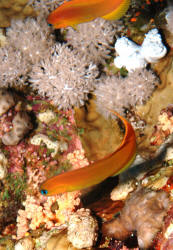 --des/Jane Midas Blenny Dear Mr. Fenner, So, how can I determine which specimen that I have? Does it possibly just need more time? The fish is about 3 1/2 in. long now, could it just not be a mature specimen? Also, How am I suppose to know that the fish that I am receiving does not look anything like the fish in the picture before I purchase it? Is this an isolated incident for this specimen? Or is it possible for me to order a Purple Tang and receive a modeled brown on? At 3 plus inches this is a mature individual... and it may well be a/the species Ecsenius midas... and may still change color... There is a large amount of variability in the color/markings of this blenny... For what it's worth, the Purple Tang is a much more "standard" color/markings species. Bob Fenner> > Dear Mr. Fenner, > Last week I purchased a Midas blenny from ffexpress. When he arrived he was a dull brown color with light colored patches all over him. The first > day all he did was swim into the power head, and by the next day he had developed a white fleshy looking patch that covered half of his left > pectoral fin. He is now quite established to the aquarium, finding himself a hole to live in, eating, and no longer swimming into the power head, and > the white patch is about half the size that it was. However he is still a brown - white modeled color and he still has the fleshy looking thing on > his pectoral fin. Do you have any suggestions on what I can do? The patch on his fin has not shrunk any in the last few days and he does not appear > to be coloring at all. > Thanks, > Bryan Hunt > Hmm, I'm wondering first off about the coloration of this Midas Blenny... there is a wide range in the species Ecsenius midas...(most are yellow, > orangish... with white banding posteriorly, underneath...) but there are also a bunch of other Ecsenius blennies... The initial behavior is nothing to be > concerned about... just a bit of acclimating to new conditions, shipping stress... And the patch on the pectoral could be resultant to a small, simple > injury... and should clear of its own accord... The color though... may be the actual permanent one of this specimen/species... > Bob Fenner Midas and Bicolor Blenny, together? Bob, Any problem adding a Midas Blenny to the same 60 gallon home as a well entrenched Bicolor Blenny? (Also has a Royal Gramma, Firefish, and Banggai) Chris bought a Midas, but if the combo won't work, we'll put it in the other tank, with the Coral Beauty, Banggai, and 6-line wrasse. (any problems there?) The Midas is currently lounging in week 2 of quarantine with a dwarf angel of undetermined species. (Really... undetermined...) Thanks! (Should be okay... though the only assay to trust is the actual one of trying... similar blenny (and-or Gobioid) species utilizing a similar habitat- food stock are bad news in general... You'll be able to tell almost immediately if this is going to work. Bob F.) -Lorenzo Sick Midas Blenny!! Hi Bob, Yikes! Just tried to feed the blenny and it was the same deal. He showed no interest in food, or even in moving. I think this is serious but for the life of me have no idea. <Mmm, could be "just a phase"... perhaps tired of the same old foods... maybe an aerosol, or bug that fell into the system...> Yesterday I fed him and he was not so interested in food as usual (ate the Nori fine, earlier that day). He is just sitting or lying in rock. Little movement. He is breathing and responds to stimuli Light, movement, my finger). <Sometimes this is all that they do... for quite a while> Other thing I am wondering is if he got some bad food. Both of the fish aren't too hungry but the Kole is eating. Did some water tests: Temp 80; SG 1.0235; pH 8.2; Amm 0; Nitrite 0 or trace (did two tests to check the trace); Nitrate <10 Alk 3.5 No scratching or anything. The color on the blenny is off. (Yesterday or before. No marks on blenny.) I noticed the color is off, like the tan with dark brown streaks like when I bought him. Yesterday was ok. <When in doubt, water change... about 20%. Bob Fenner> --des/Jane Blenny died :-( Hi Bob, <Hello> I have written you on my Midas blenny-- he was my favorite fish-- last night he appeared in the front of my tank for a few hours. This is strange as I haven't seen him for ages-- maybe a glimpse here or there. Anyway this morning I saw him being chewed up by some hermits. I am assuming he died and the hermits were just eating the corpse. However, last night I noticed he looked quite bad, maybe emaciated. I think perhaps he died of starvation because he was never around to be fed, but as I remember this was one of the better eaters, so I'm sure it wasn't the reason. He has not been doing well since I pulled the Clarkiis, and the Kole died due to injury. Is it possible the injured Kole could have had an infection that would have carried over to him somehow? Or that the fish died of all the stresses from fish being moved around etc. Or even of loneliness/stress of missing certain fish. I don't suppose we'll ever really know though. <All possible contributing causes> BTW, just got a new Coral Beauty and he's in qt now. He's been in the store a month (2 weeks in quarantine). And looks very fat and healthy. A beautiful fish!! <I hope this fish does well for you. Bob Fenner> --des/Jane Ecsenius midas Hi M. Fenner, I'm the French aquarist who asked you some information's about Samariscus triocellatus !! Now, I'd like to know more about Ecsenius midas because I'm writing a article for the ARA : www.aquarium-recifal.com about this fish. I read that there was mimicry between Ecsenius midas and Pseudanthias squamipinnis, but I remember that you said it wasn't true...how do you explain the similarity between the two species ?? <Mmm, actually, don't recall such a statement. As far as I'm concerned the Midas Blenny definitely is a Batesian mimic of the Orange Anthias> I looked for information about reproduction and breeding of this species but without any success :-( . 