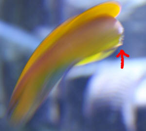 Midas Blenny/Health 4/15/09 Midas Blenny Problem 2/13/09 Hello WWM Crew, A couple of weeks ago, my mom purchased a Midas blenny for her tank (which I take care of. I'm only 14.). We don't have a quarantine process, but he had been in the LFS's tank for about 2 months out in the open with no signs of any problems, internal or external. <Mmm> We brought him home and acclimated him slowly, and even while he was acclimating, he didn't breathe heavily or change colors. As soon as we put him into the tank, he found the perfect home, and when I fed the other fish, he ate like a pig. <Good behaviors> Since then, he's been out swimming when I get up, when I feed the fish, he eats more than any of the others, he's always a bright orange color, and he hasn't switched hiding spots. So you can imagine my shock when today I find him, with a very brown face, hiding in a new spot, breathing extremely heavily. Then when I fed the other fish, he didn't even move, even though it was his favorite food (Cyclops-eeze). I tested water, and all of the parameters are normal, and the other fish are breathing normally, eating normally, and acting normal. The blenny won't come out of his rock, so I can't get tell if there's something physically wrong with him. Our tank is a 125 gallon reef, and it's inhabitants include a four inch yellow tang, a 1 inch damsel, a maroon clown, and a false percula clown. We also have a snowflake eel that we're moving to a larger tank soon. The only thing that I can really think of that would have happened to cause such a dramatic turn-around would be that perhaps the eel bit the blenny? <It may as you speculate... that something, someone spooked the Midas> But like I said, I can't see the blenny's body; I can only see his head. Do you have any other ideas of what could happen, and perhaps a plan of action? Thanks, Michelle <I can... this fish might also have scared itself... a reflection in the glass/side, jumping, hitting the top... I would not panic here... Nor would I move this fish, add a "treatment" to the water. Best to exercise patience and careful observation... as you've apparently been doing. Bob Fenner> Re: Midas Blenny Problem 2/13/09 Unfortunately, just minutes after I finished this email, my blenny stopped breathing. We looked at his body, and there were no visible signs of any ich, bites, or other potential causes of death. <Ahh, sorry for your loss. Ecsenius are one of the groups of animals I would class as being able to be "scared to death"... I do think this may be a case here. BobF>