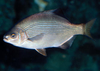 Striped or Barred Surfperch. Baja to Alaska. To fifteen inches in