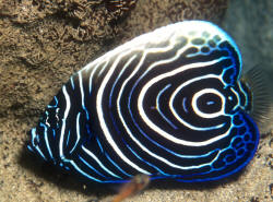 Re: The Emperor's New Spots... actually old 11/24/07 Hey, guys, hope you had a good Thanksgiving! <And you> I wrote in a couple of months ago regarding my 7-8" adult emperor angel; he was displaying small spots of discoloration and I couldn't figure out why. Of course, I don't expect you to remember that, so I will refresh. I've had the emperor for about six months, and he's been eating fine the entire time. I feed a very wide variety of food ~3x a day. I supplement this food with vitamins every two to three days. He's in a 265g and tank mates include a juvenile Koran, a flame, a semilarvatus butterfly, a fremblii butterfly, a lawnmower blenny, and a red sea sailfin. The emperor is the largest fish in the tank and nobody bothers him (nobody really bothers anybody for the most part, the sailfin and the fremblii go at it occasionally) so I can't imagine it would be stress. <Mmmm, am not so sure... some specimens are just touchy this way> There is plenty of rock work with a lot of caves and tunnels he can and does utilize. Tank parameters are and have been as follows: temp 78-80, pH 8.1-8.3, nitrite undetectable, ammonia undetectable, NO3, PO4-undetectable, dKH 9-11, Ca-380-420, Mg-1400-1500. Everything is good but the Mg, and I don't know how to get that down. <Might be your test kit/s, possibly the brand of salt mix, supplements...> I do water changes and keep the salinity at 1.024-5. I only dose Ca and buffer. <Look at the make-up of the buffer> The emperor and the Koran have been fighting intestinal worms. The only reason I knew they had them is because I could see them hanging out of their vents. Neither of them is acting at all symptomatic. I finished dosing with gel-Tek about a week ago and it seems the emperor has gotten rid of them. I don't think it's HLLE that's causing <Actually... got to interject... HLLE is not a cause... but a result...> the discoloration because it is not concentrated at all on the head or lateral line. The other day he had what appeared to be ulcerations on his belly. They were white, not red, and were shedding mucus. They have since cleared up, but in there place is more of the discoloration. I have never noticed any mucus shedding at any other time. Any ideas....? <Something still amiss... Doesn't read as environmental, nutritional... Am still thinking it's social... If you could remove each fish in turn... I think you'd find it was either the Koran or the Zebrasoma here...> Thanks in Advance Ben <Welcome. Bob Fenner> Re: The Emperor's New Spots 11/24/07 Now that you mention it, that Zebrasoma is probably the most rambunctious fish in the tank (along with the fremblii). <It is the alpha animal here, little doubt... and I do hope to make some 1080 images with my new UW digital video rig of the Hawaiian endemic BF... am just out in HI now> I am not attached to him at all, so I will go ahead and move him to another tank and see how it goes from there! <Ahh, good... Should be telling> Thanks again Ben <Cheers, BobF> Angel Fish Question. Emperor beh. 5/23/07 Hello crew, <Jesse> I have a question regarding my Emperor Angel. I have had the small angel for about 3 months and I noticed this last week that he was occasionally flashing against smooth rocks on my sand bed. <Mmm, "do this" a bit...> It was not very often and my other fish - Huma Trigger, Yellow Tang and Porcupine Puffer are showing no signs of stress. The Angel is eating great and very alert, but this morning I noticed he seemed a little faded or blotchy. <Also not something to be concerned about if it comes/goes> I am not sure, if he has always been like this or if it is from adjusting to me turning the lights on in the morning. <This and general "mood"... and communication...> I thought that perhaps it was part of his change into adult form. My specs are: 220g FOWLR, 0 ammonia, >.3 Nitrites (as good as the test will say) and 12 Nitrate. Temp 76 gravity 1.023. Just curious what the issue may be or if there is an issue at all. <I doubt if it/this is an issue... as you state your other fishes are fine> I often feed him: Spirulina enriched brine shrimp, Mysid shrimp, plankton, small squid pieces and Nori . Most of my food I also soak in vitamins and the occasional garlic. Thanks for the input, Jesse <I would not be concerned here. You might try a small cleaner goby species (shrimp are too likely to be consumed by the Trigger, Puffer) of the genus Gobiosoma/Elacatinus... in an attempt to lower overall stress here. Bob Fenner> Rapid Breathing Emperor 1/19/07 Hello Crew. I have a 3 inch emperor angel that I have had going on 5 months now. He is in a 120 gallon with a 50(?) gallon sump that houses an Aqua C ev-120 (that has yet to produce any skimmate). <Mmm, may not... your system may be in a sort of "balance"> The tank has vigorous water flow ( approximately 2000 gph). The water tests out with 0 ammonia and nitrites, nitrates >25 ppm, <Do keep this under 20 ppm.> PH 8.1, temp is a constant 78 F. I think the high nitrates and low PH are due to the fact that the tank is only 2 months old. It has approximately 80lbs of live rock of the same age and 30 lbs of live rock from the previous display that is over a year old. My angel has always had rapid breathing which I attributed to poor circulation and a possible low dissolved oxygen content in the old tank. I believe that I can rule this out due to the fact that I placed him in the new tank about 1 week ago and the rapid breathing still continues. I haven't completely ruled out a parasitic infection of some sort but believe it to be unlikely. <Mmm, a myriad of possibilities... can even just be resultant from moving, shipping stress...> My reasoning behind this is that in the 5 months that I have had him he has not displayed any other symptoms that one would attribute to parasites. He eats like a pig (possibly over fed), never flashes or scratches, has never had a speck on him ( he is so bright and flawless he almost looks fake!), and other than the rapid breath