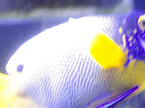 Injured Navarchus Beauty II >Thanks so much for your quick response. >>You're welcome. >Please continue your opinion on the antibiotic treatment. >>There's not much else to say beyond what I outlined previously. I prefer Spectrogram because the applications where it's worked amazingly well (including stopping degradation in starfishes), and it's a good, relatively inexpensive antibiotic. >I picked up some "Aquatronics Paragon" last night in case I need to go that route. Do you know this product? >>Yes, I do, and there is nothing at this time that indicates the need to use something this strong. Please go to the Aquatronics site and read the uses for *both* Spectrogram and Paragon. Paragon *might* be indicated for some parasitic infections, with antibiotics for the usually associated secondary bacterial infections. However, there is nothing in your situation that shows a need for this. Again, I strongly recommend Spectrogram. http://www.aquatronicsonline.com/ >Is there something else you might suggest? >>Not at this time. >I will add the Selcon to his food today. I have been using Vita-Chem with his diet of various frozen foods, Angel formula, flake, pellet and Seaweed Selects daily. I have the patience and time to treat him but I know he wants to be back in the main tank as he can see it and tends to stay on the side of the QT closest to the main. >>I'm sure he does. >He and the Blondie Tang are buddies and even share the same sleeping areas. Thanks again. >>Remember, this appears to be an injury, don't simply treat to treat, wait it out, a few days to a week should be fine, and if he's doing well, carefully place him back in the display. I strongly suggest you do this as early in the day as possible so he avoids bumping himself. Hopefully no one will have established territories such that he has to stand up for his own turf. Marina Sick Blueface I have a blue faced angel that has been sick for about 7 weeks now, I have him in a sick tank, the first symptoms showed up as not eating and staying in one area of the tank. 2-3 days later, one of his eyes started to pop and I immediately took him out and put him in the 10 gallon sick tank. The first week, I used maracyn-2 on him, and then did a water change and added vita-chem vitamins. I have been changing the water every 5-7 days and re-vitamin-izing the water since then, trying to feed him live brine, frozen fresh, "seaweed" and flake foods, he still hasn't eaten any (at least that I've seen). His second eye started puffing about 4 weeks ago, but is about normal now, the other eye is down to about 50% of it's biggest size, but he has been that way for about 2 weeks now. My Q is whether there is anything else that I should be doing to help him out, should I try to re-medicate, or just let nature take it's course and see how he does. He seems pretty strong still considering he hasn't eaten in a long time now, and he doesn't appear stressed, and has no other outward signs of sickness other than the eyes and no eating. Thanks! Gil >> Gil, thank you for writing. It is a shame but the three gorgeous large marine Angels of the Subgenus Euxiphipops (the Navarchus or Majestic, and Six Stripe, in addition to the Blue Face), do so poorly in captivity. Kudos to you for having a sick tank and acting so quickly and intelligently. As the fish has shown considerable improvement, I would continue with your regimen (feeding, water changes), leaving it in the sick tank. As to presenting more antimicrobials to the water itself, I would not. Instead, I would encourage you to either make or buy pre-made anti-biotic and anti-protozoal foods (these are made by some of the big name dry-foods manufacturers like Tetra/Secondnature), and alternate their feeding (with live/frozen at the latter part of the day) for a good three weeks. For more on making your own medicated foods and disease treatment in general, you are welcome to search through my ongoing efforts to place articles, upcoming manuscripts at wetwebmedia.com Good luck. Bob Fenner Thanks for your quick reply! I will continue with that I am doing and try to get him to eat medicated food, I have some from my last order from pet warehouse. FWIW, the other fish in the tank never did show any symptoms and are eating heartily, and are still doing real well, just this one angelfish got sick. I'll let you know how it turns out, as it seems that this is a difficult sickness to cure, I am surprised he has lasted this long without my seeing him eat at all. I'll be checking out your webpage too to see what I can find about treatments. Thanks again for the quick reply! Gil >> I'm not too surprised re the apparent non-infectiousness from the Blue Face. Likely the "problem" is internal (infectious, parasitic, or systemic), and it does sound like you've reacted "in the nick of time", though the remaining eye swelling may take months (or forever) to return to normal. Bob Fenner Cloudy eyes on angel Hmm, I would say this is an all-too-typical "stress syndrome" problem with this problematic species (actually all three species in the subgenus Euxiphipops)... rather than a "bacterial infection" per se... So, what would I do if it were up to me? Whatever that could be done to incrementally improve the fish's environment... varying the food more? More live rock, a new biological cleaner organism... cleaning the skimmer, replacing your activated carbon... This is "just" a high stress species that exhibits this sort of appearance to those who are sharp of eye and quick in action... Most die "mysteriously"... Bob Fenner Thanks for the rapid reply. I've had him for over a year. The only big change would be the addition of an overly active 2" Longnose hawk. He never stops swimming. I need to get a bigger tank (180g) but the rising interest rates are killing my homeowner chances. I'm afraid to have one in an apartment. Right now I am arguably overcrowded in the 75. 4" hispidus puffer, 4" green bird (male), 3" melanurus wrasse, 4" BF ang