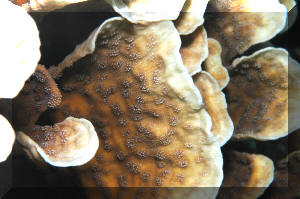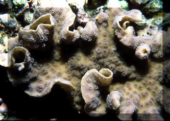 (raised corallites, spiny septa). Mostly wavy laminar sheets