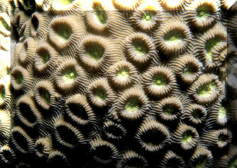 paliform lobing between the corallites. Usually brown or grey w/ contrasting