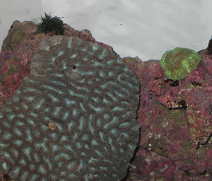 gallon reef tank with live rock, two brain corals (Favites or Goniastrea and