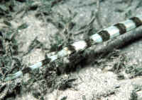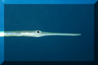 Fistularia commersonii Ruppell 1838, the Smooth Flutemouth. To 160 cm. From the entire tropical Indo-Pacific; Red Sea, Africa to Mexico. Shown: small (one foot long) individual in shallow water at night in Fiji.