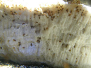 ovalish dot on the base of the Frogspawn Coral and also on the